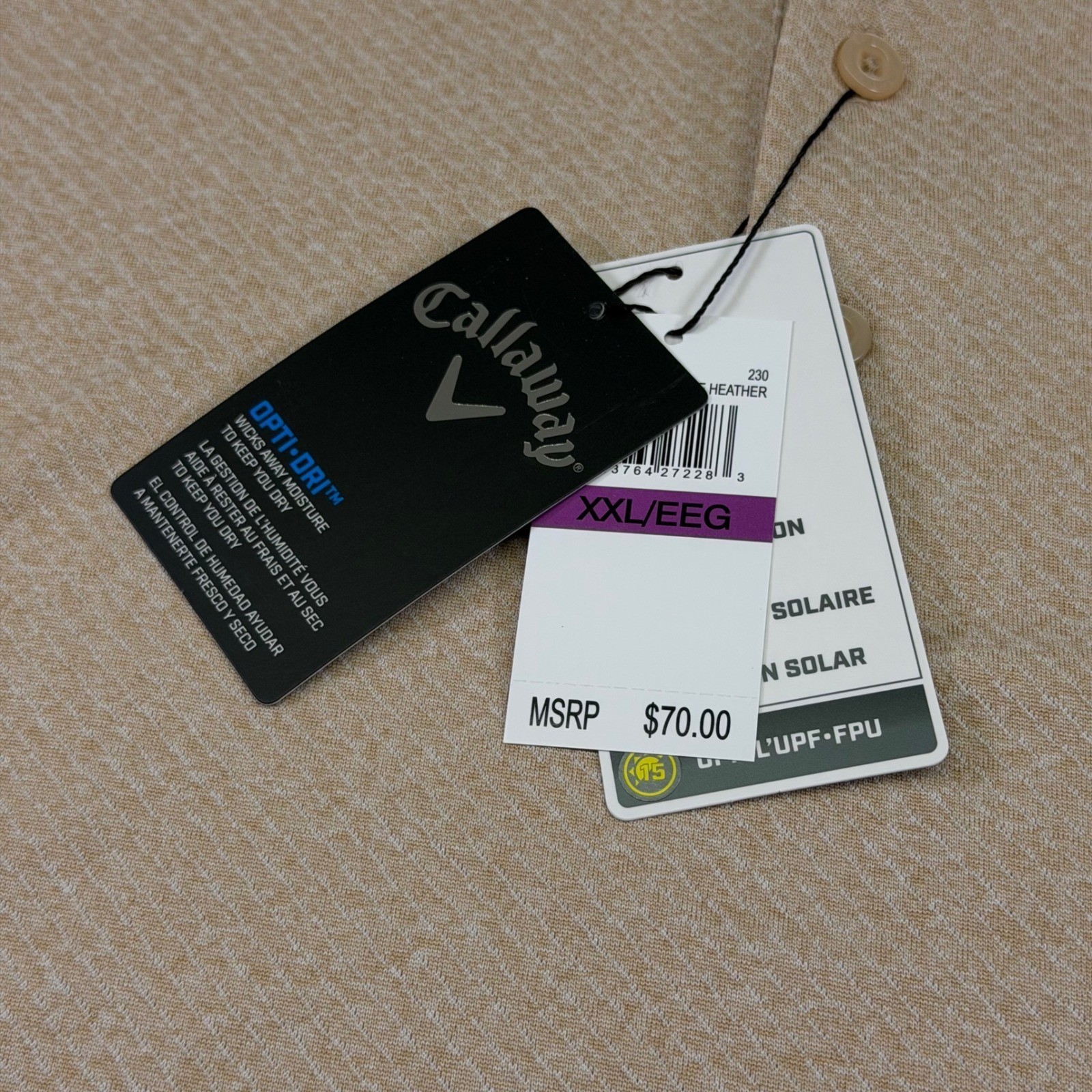 как выглядит Callaway Opti-Dri Golf Polo Shirt Mens XXL Heather Tan Short Sleeve UPF 2XL фото