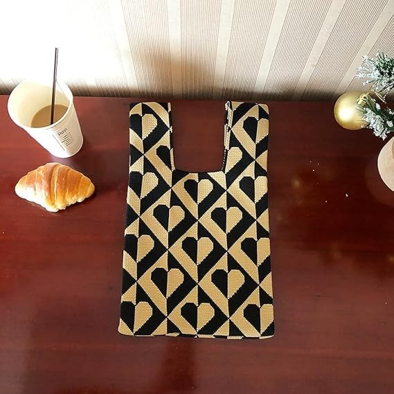 Cute Knit ToteBag Heart Pattern Aesthetic Hobo Handbag Small Crochet Style Pouch