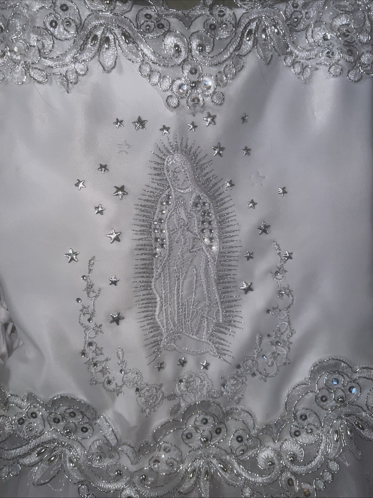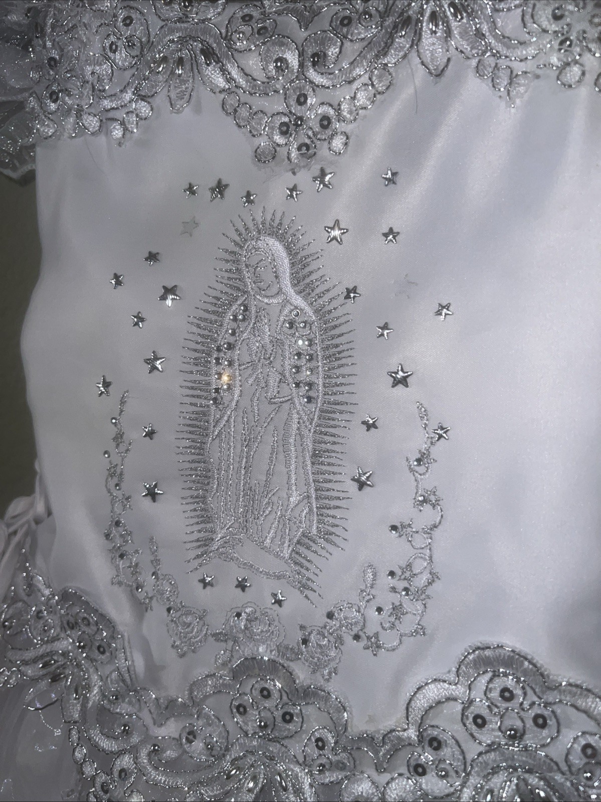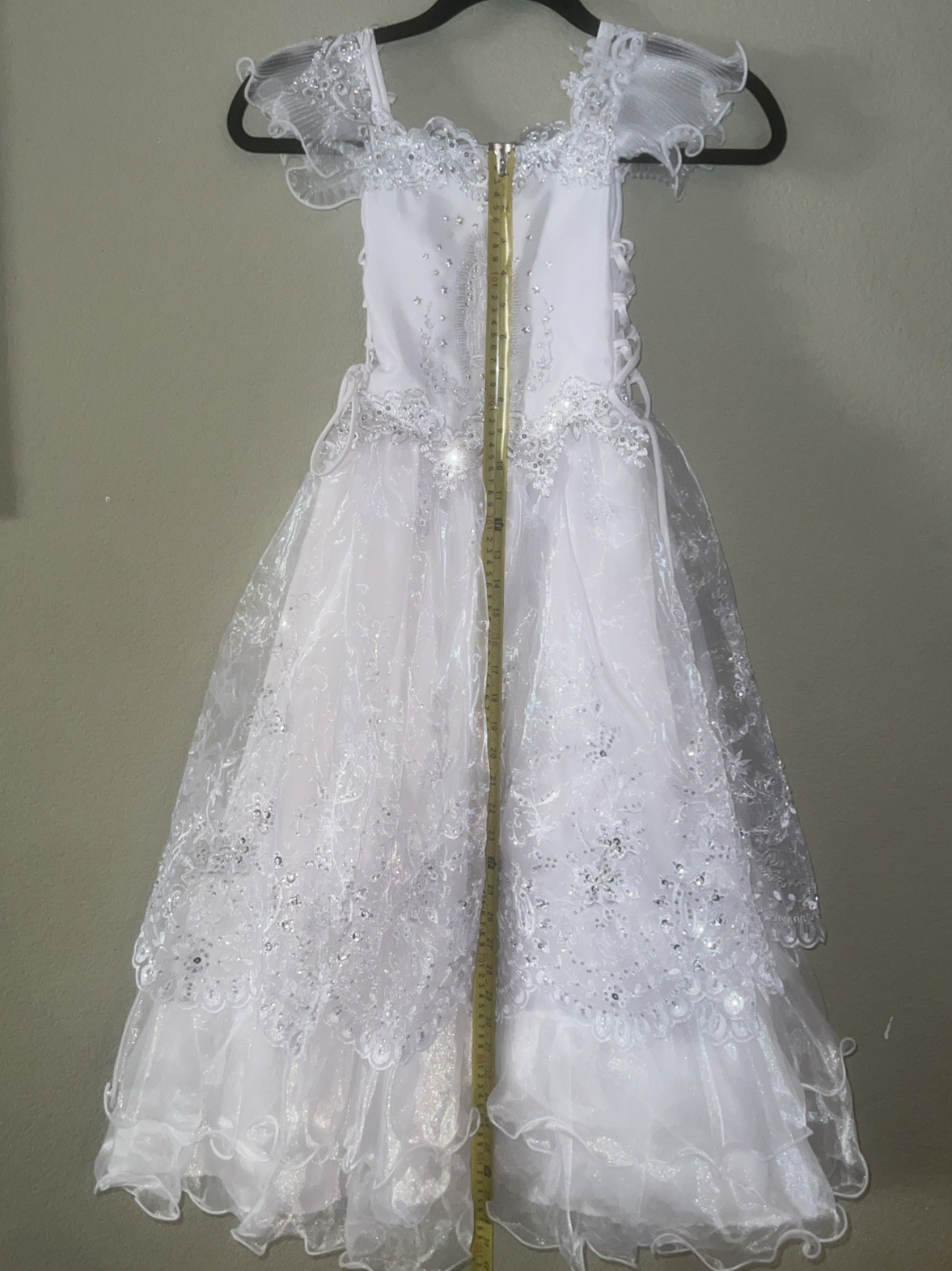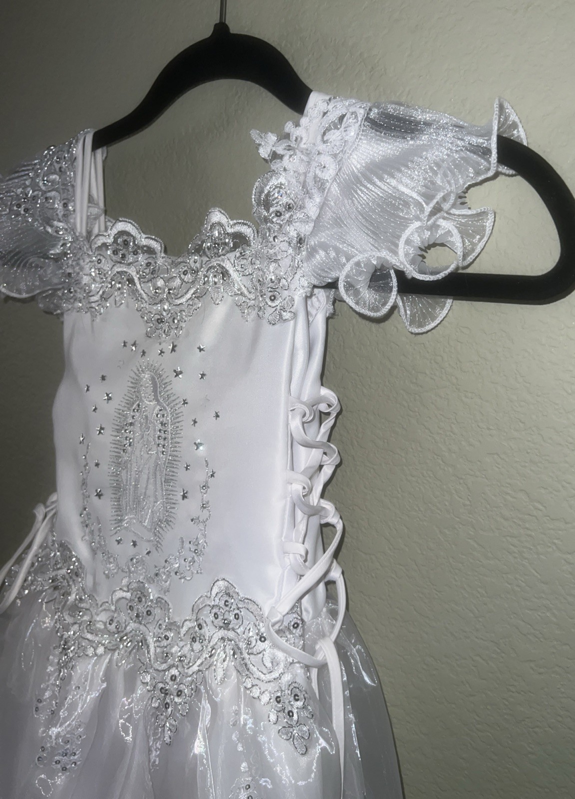 Girls White Dress Formal First Communion Baptism Virgin Mary Size 7 Preowned