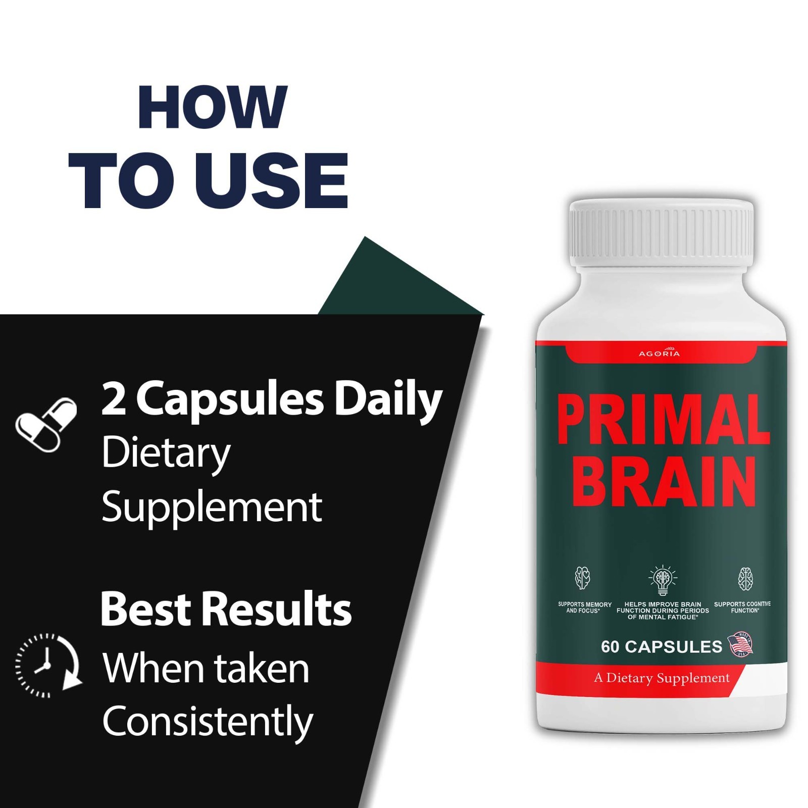 6 Pack Primal Brain Nootropic Natural Brain Supplement, PrimalBrain Capsules