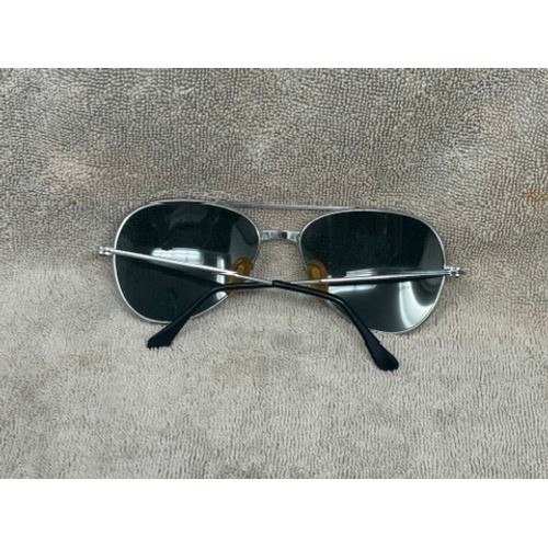 Vtg Silver Aviator Sunglasses Korea Metal Frame Dark Green Lens Double Bridge