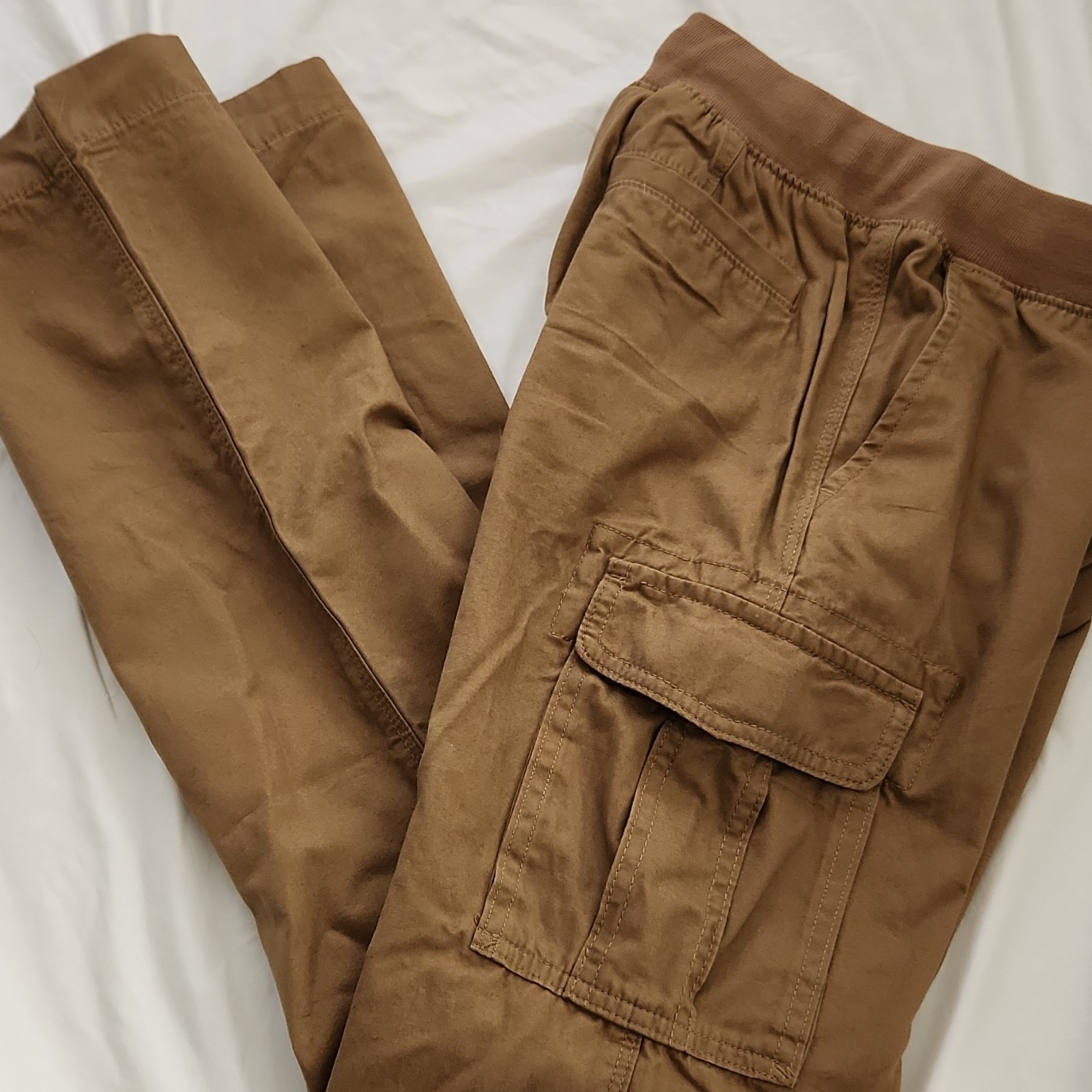 как выглядит Lands End Boys Brown Cargo Pants 100 Cotton Elastic Waist Size 10/12S фото