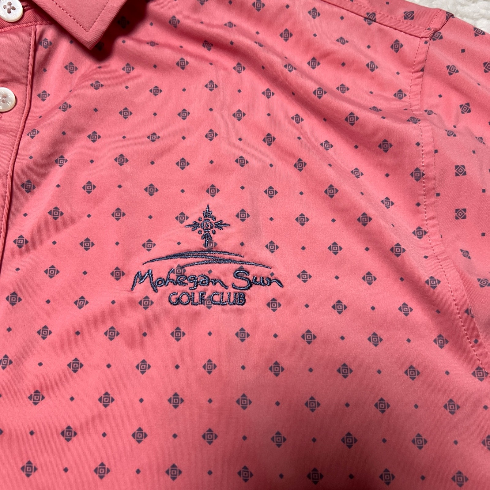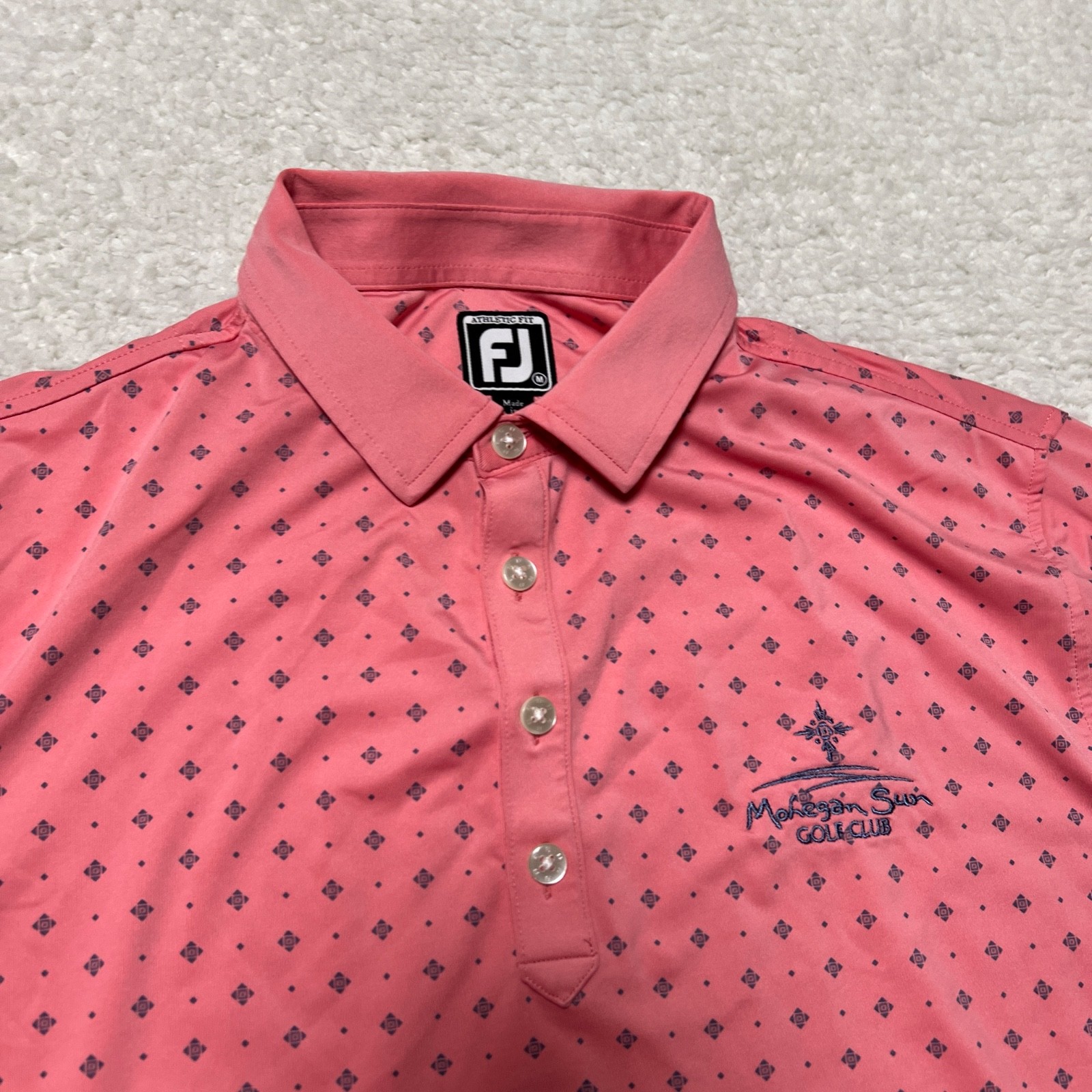 как выглядит Footjoy Polo Shirt Men Medium Pink Dots All Over Print Performance Golf Club фото