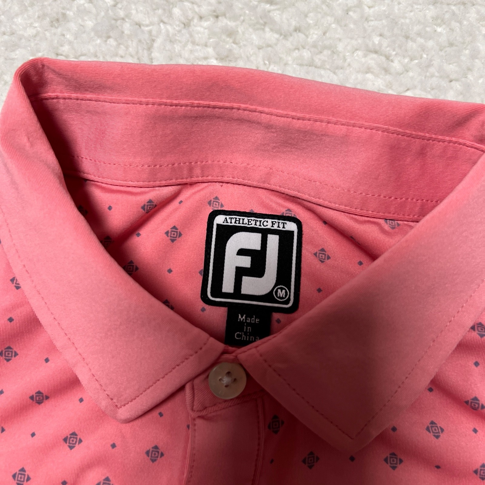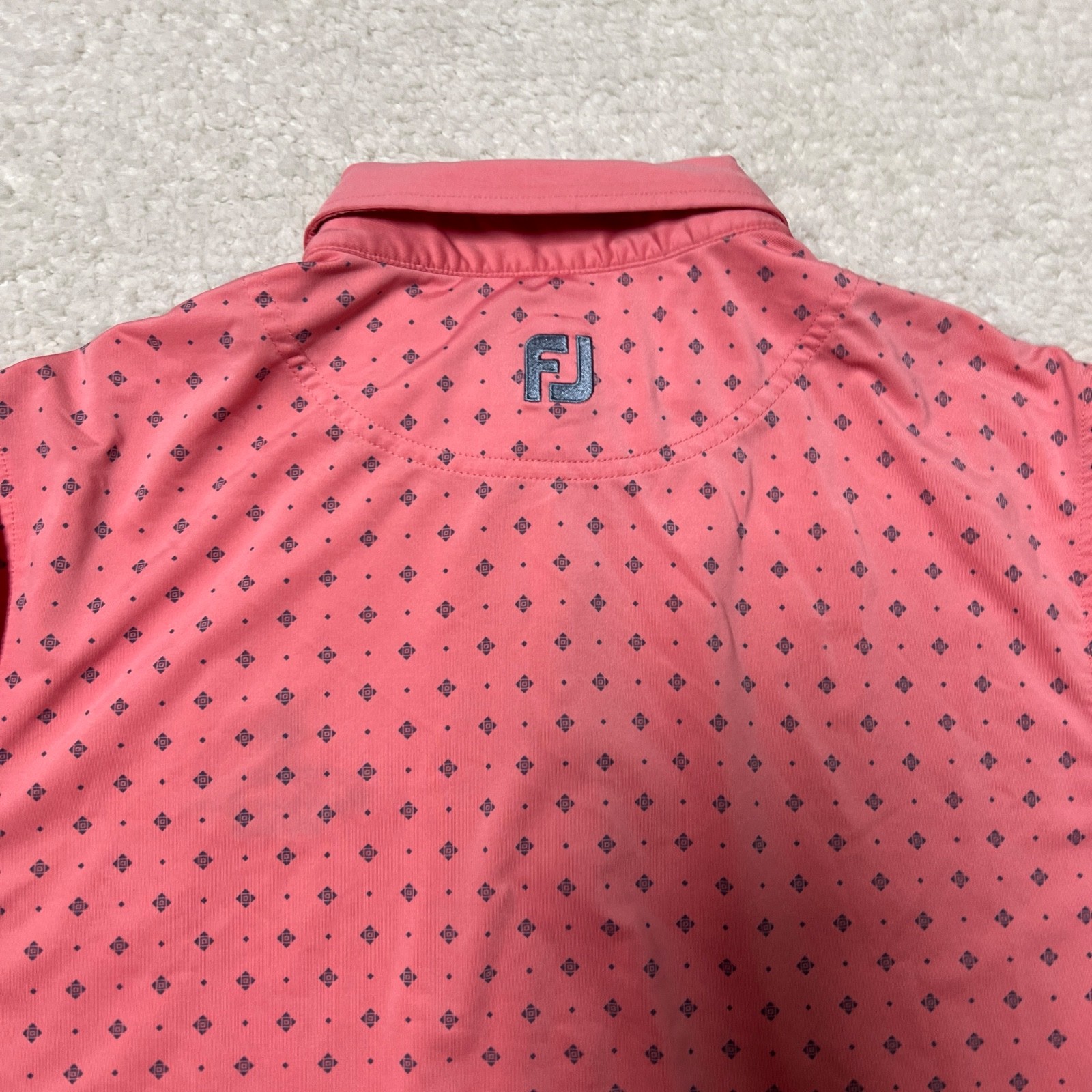 Footjoy Polo Shirt Men Medium Pink Dots All Over Print Performance Golf Club