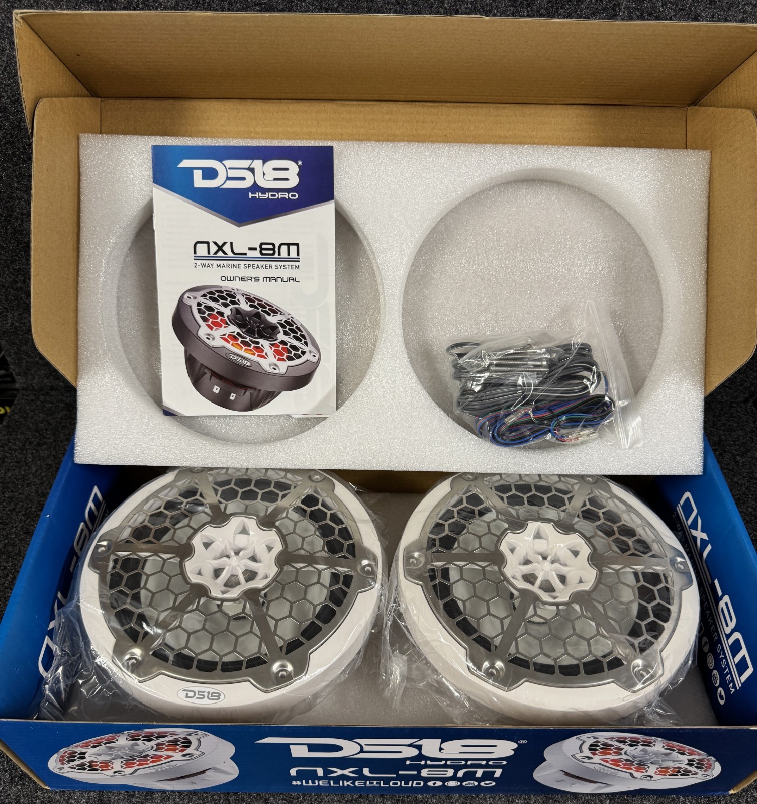 DS18 NXL-8M 8 2-WAY MARINE SPEAKER SYSTEM/375 MAX/125 RMS FOR ALL ELEMENTS/RGB