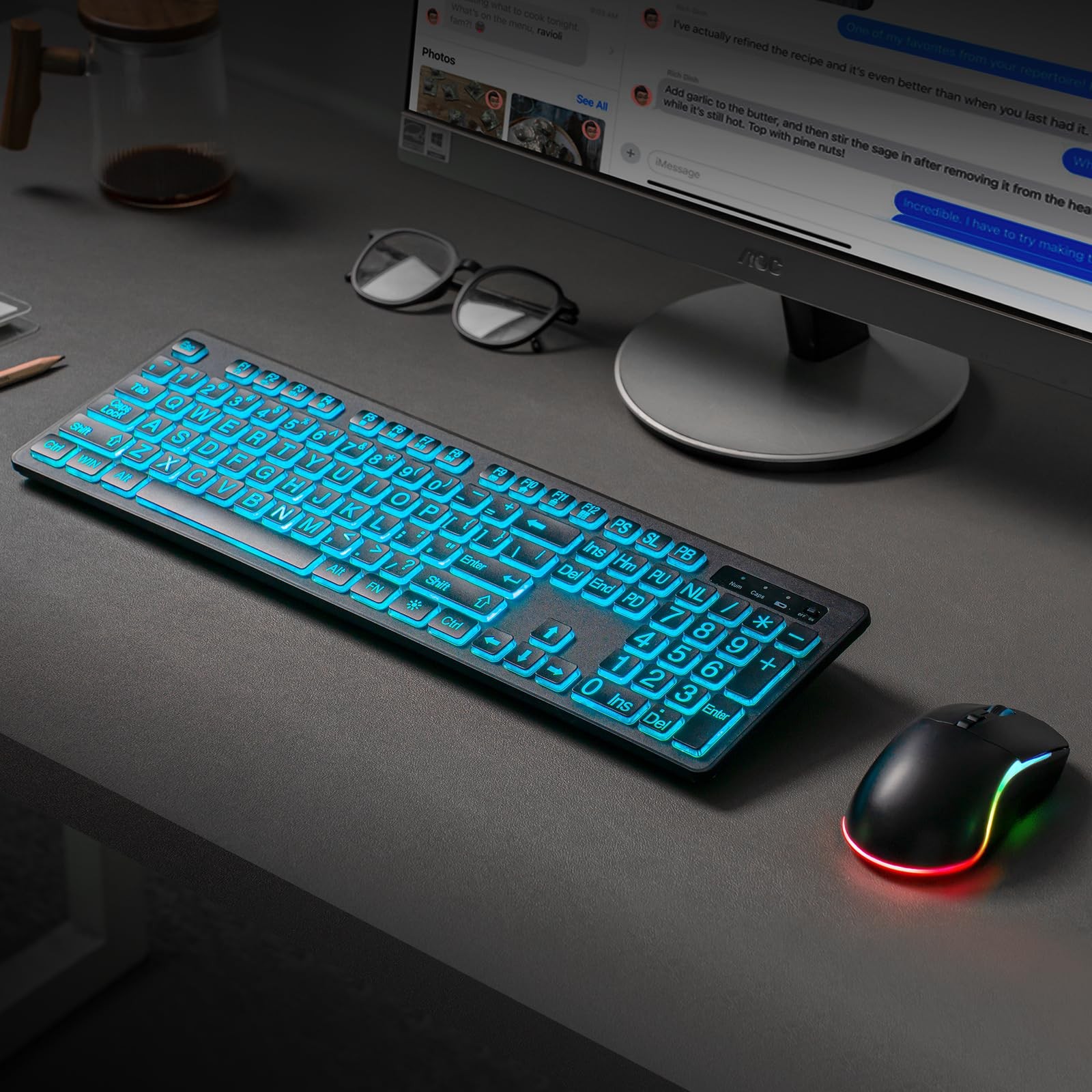 Backlit Large Print Wireless Keyboard and Mouse Combo, 2.4G Full Size Keyboar...