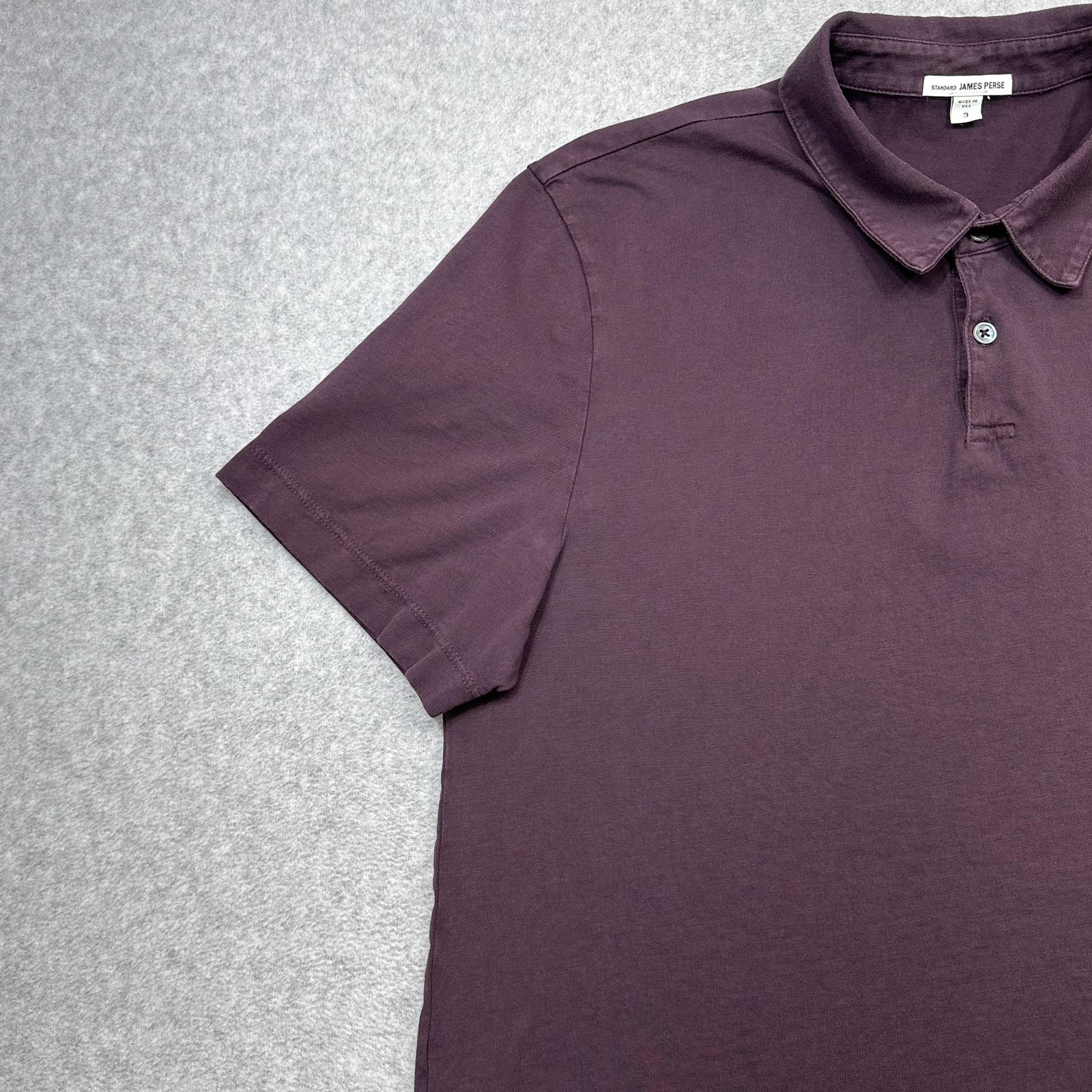 как выглядит James Perse Sueded Jersey Polo Shirt Men Large 3 Maroon Wine Solid Casual Preppy фото