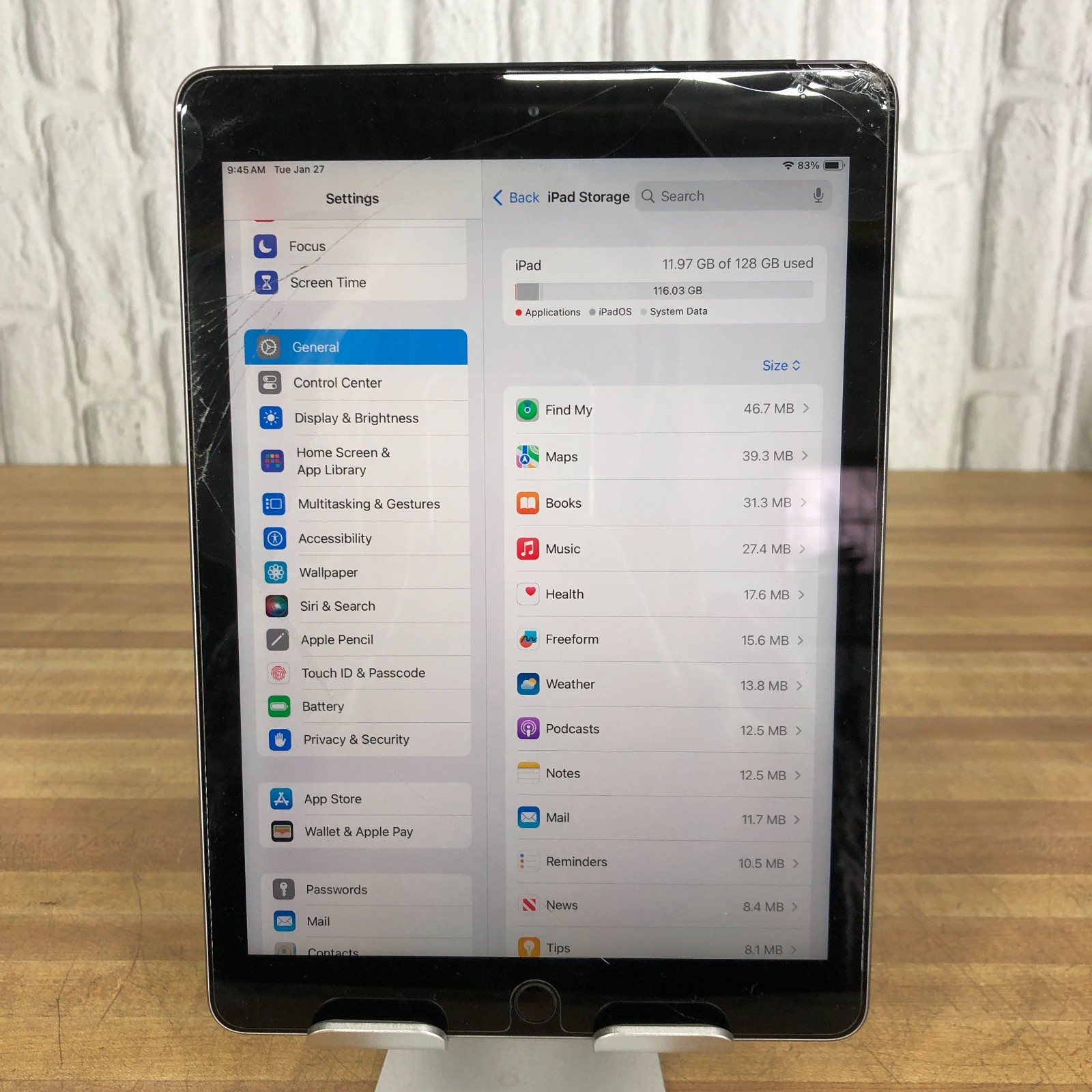 Apple iPad 6th Gen A1954 128GB WiFi Cellular FULLY Unlocked Silver Screen Crack