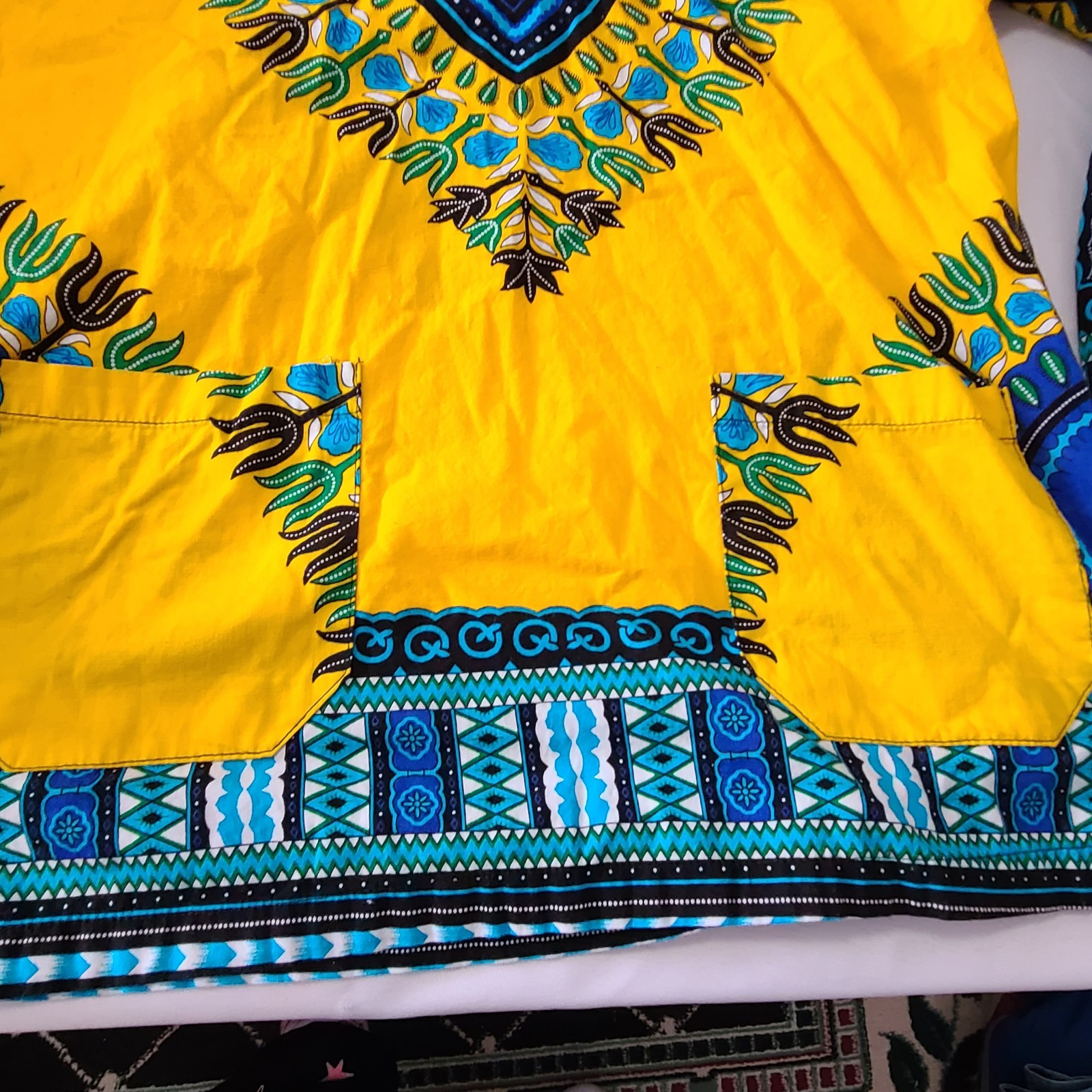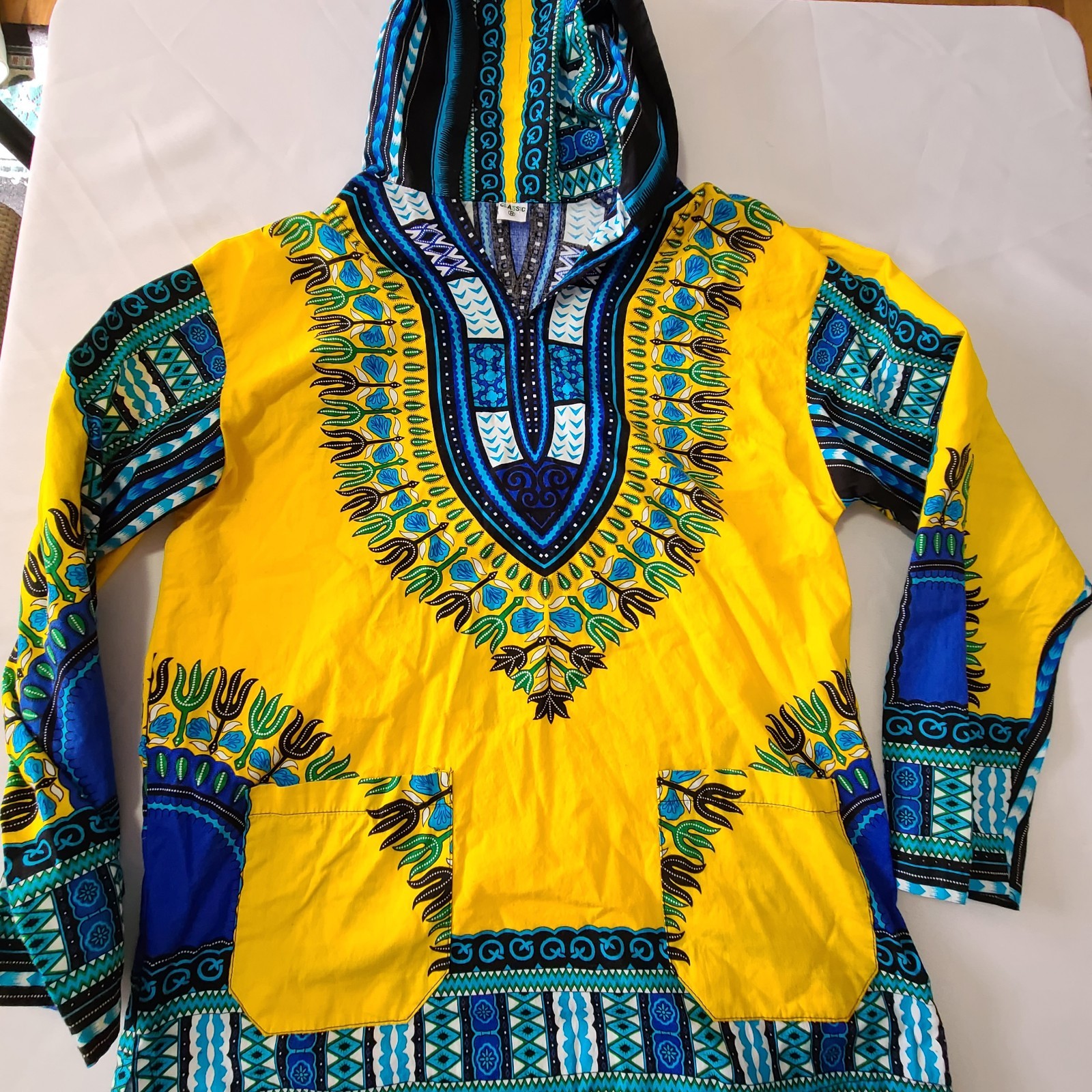 как выглядит Unisex Classic Hooded African Dashiki Design Medium Shirt Yellow/Blue фото
