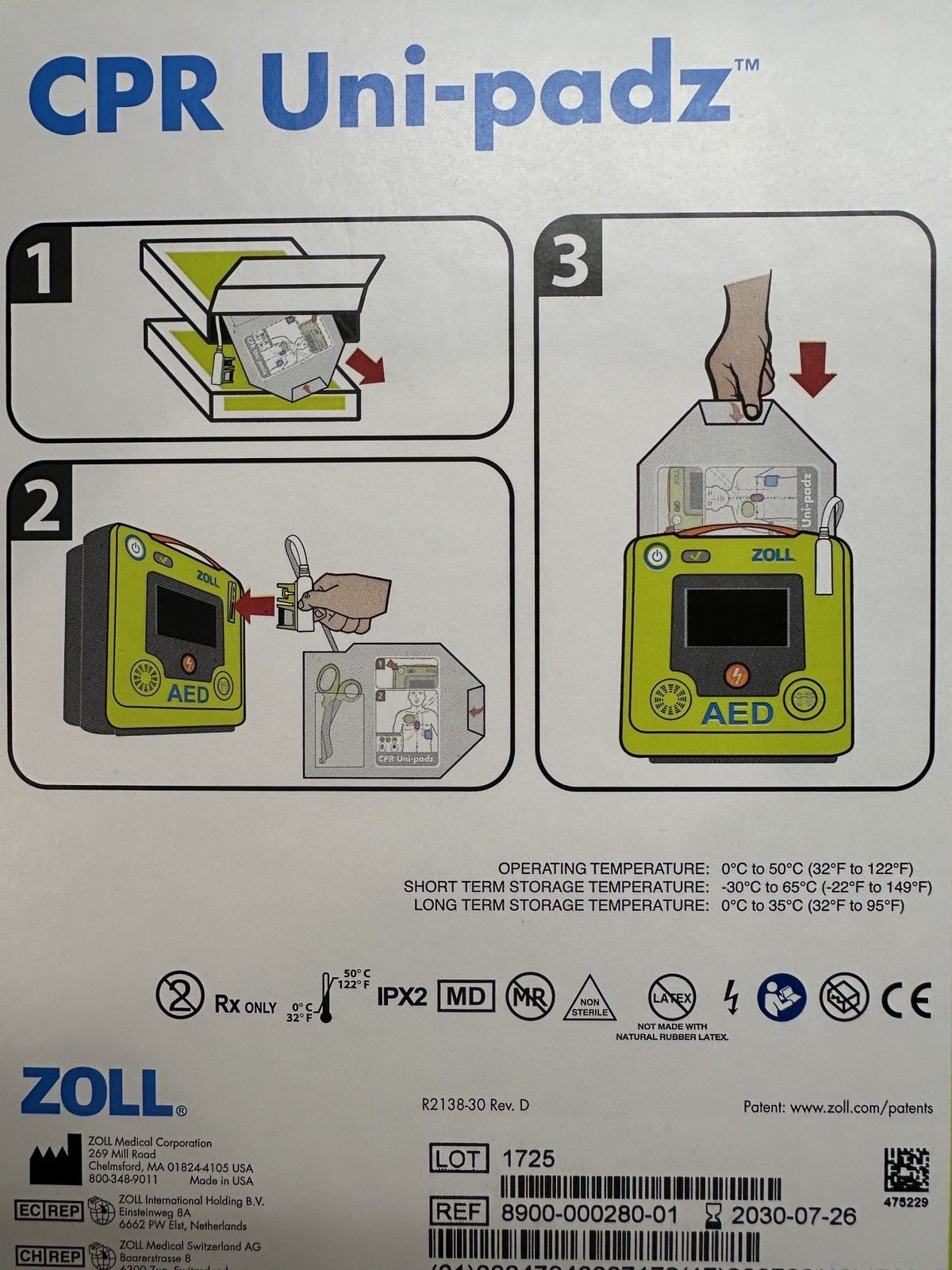 как выглядит New Zoll CPR Uni-padz 8900-000280-01 Expire 07-26-2030 фото
