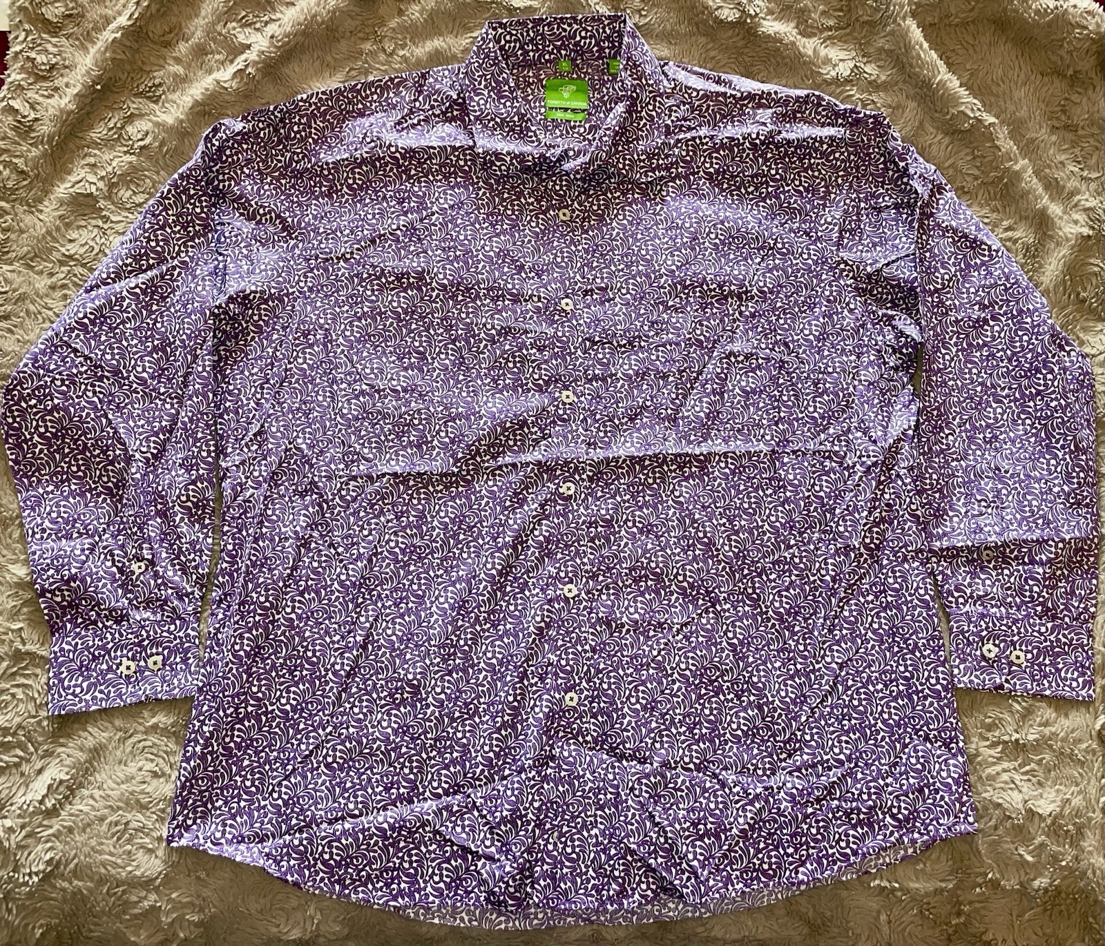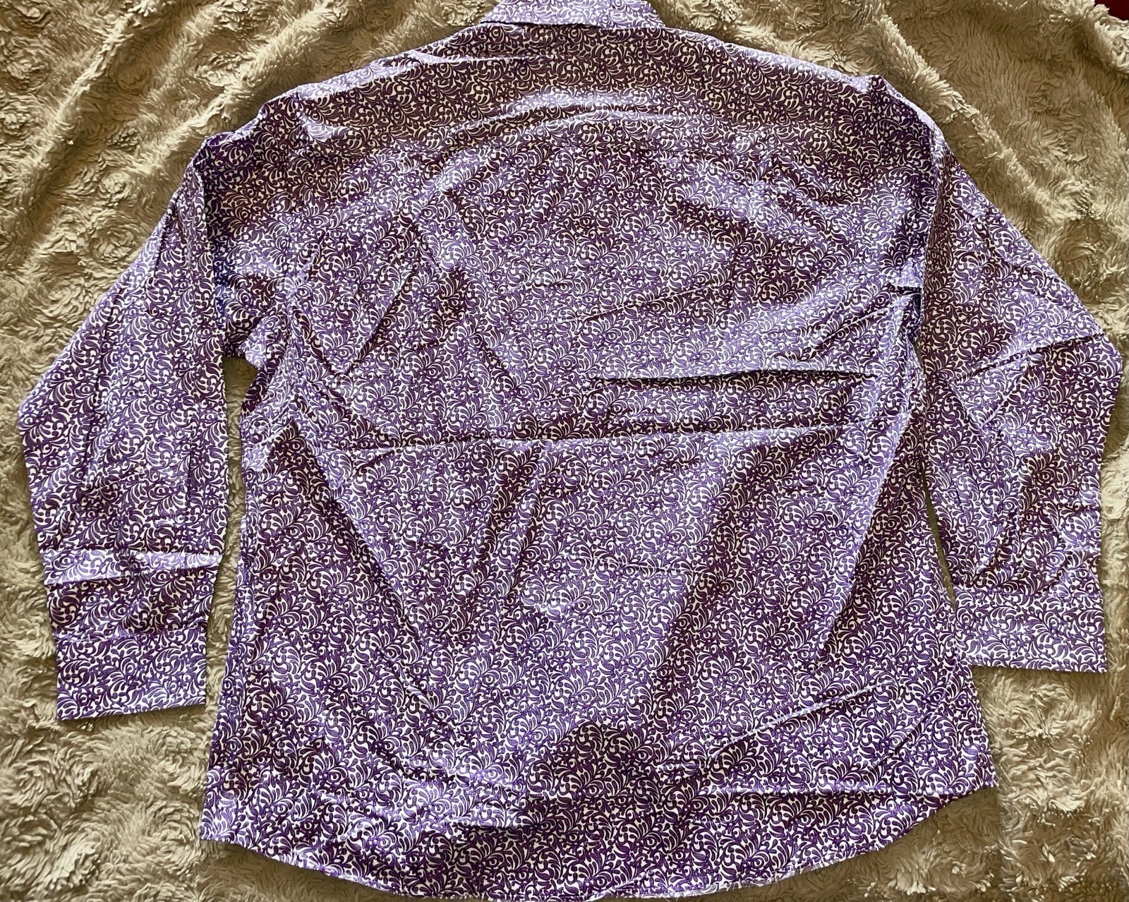 как выглядит Forsyth Of Canada Non-Iron Button Up Scroll Leaf Dress Shirt XL Purple White фото