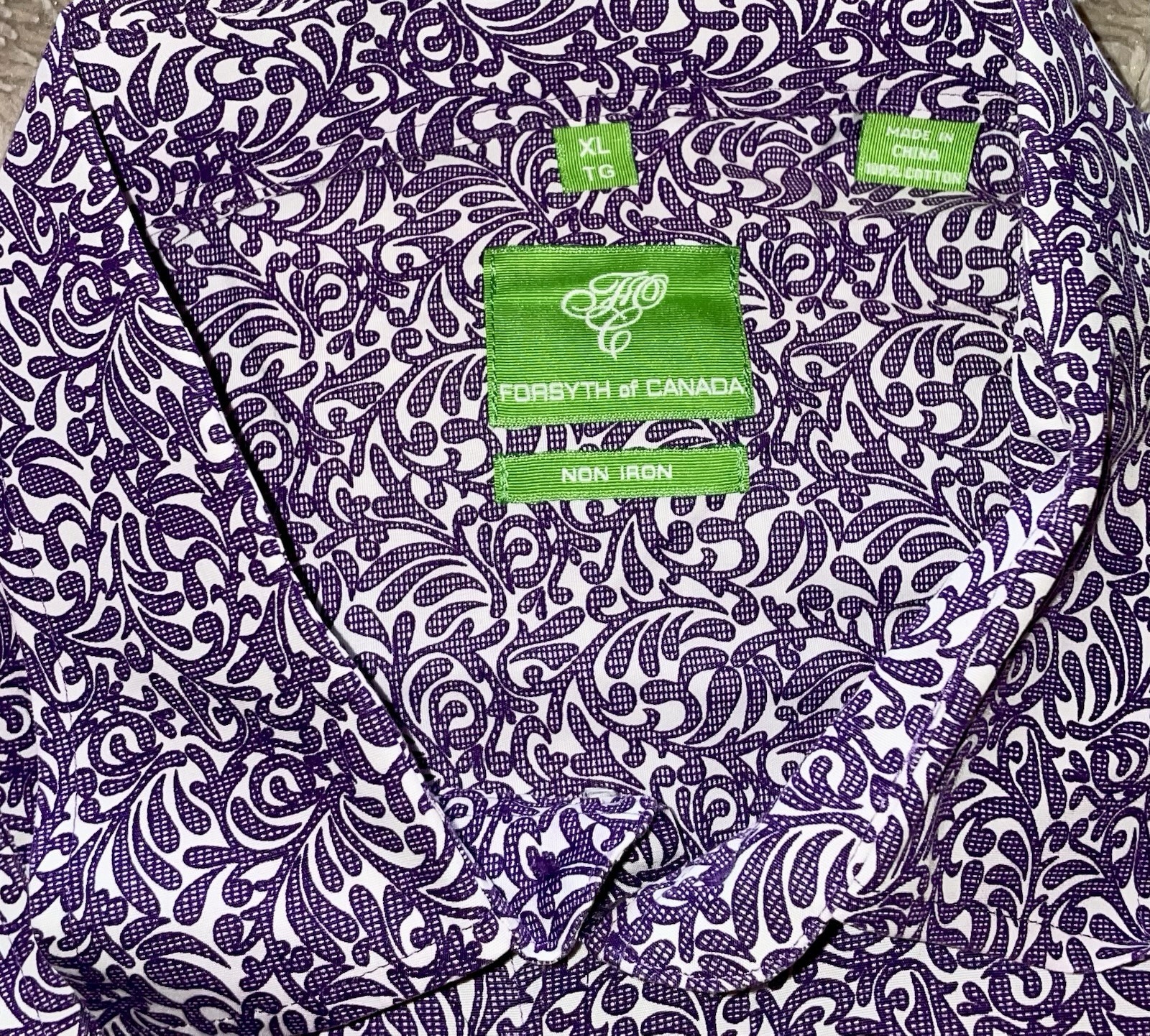 Forsyth Of Canada Non-Iron Button Up Scroll Leaf Dress Shirt XL Purple White