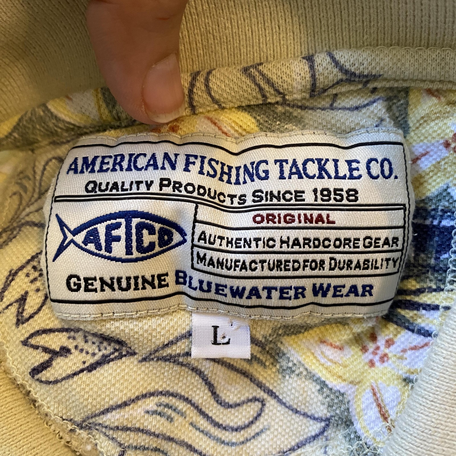 как выглядит AFTCO Shirt Mens Large Yellow Marlin Floral Polo Genuine Bluewater Fishing фото