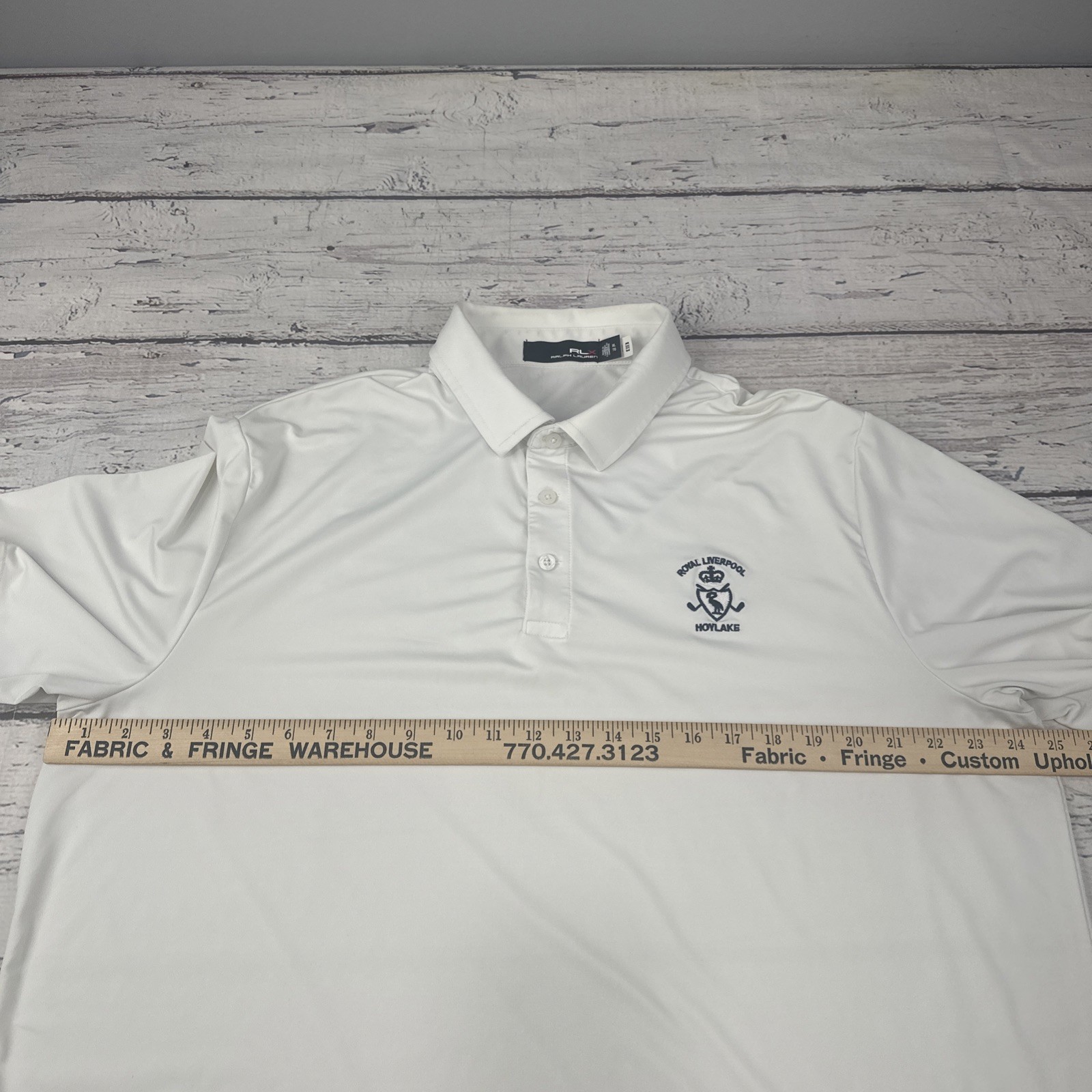RLX Ralph Lauren Polo Shirt Mens XL White Royal Liverpool Hoylake Golf Club Logo