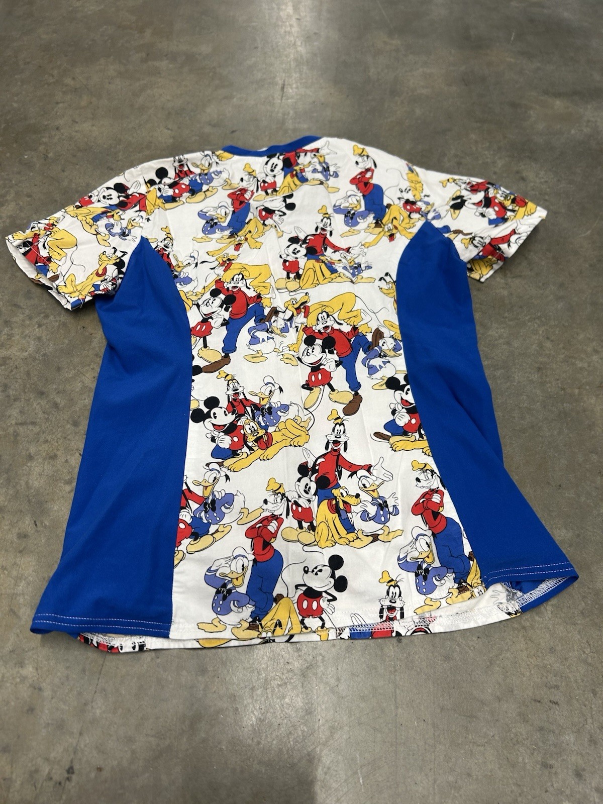 Disney Mickey Mouse Goofy Donald Duck Print Scrub Top Medical Uniform Small