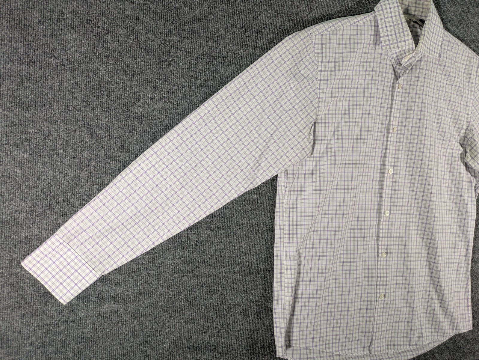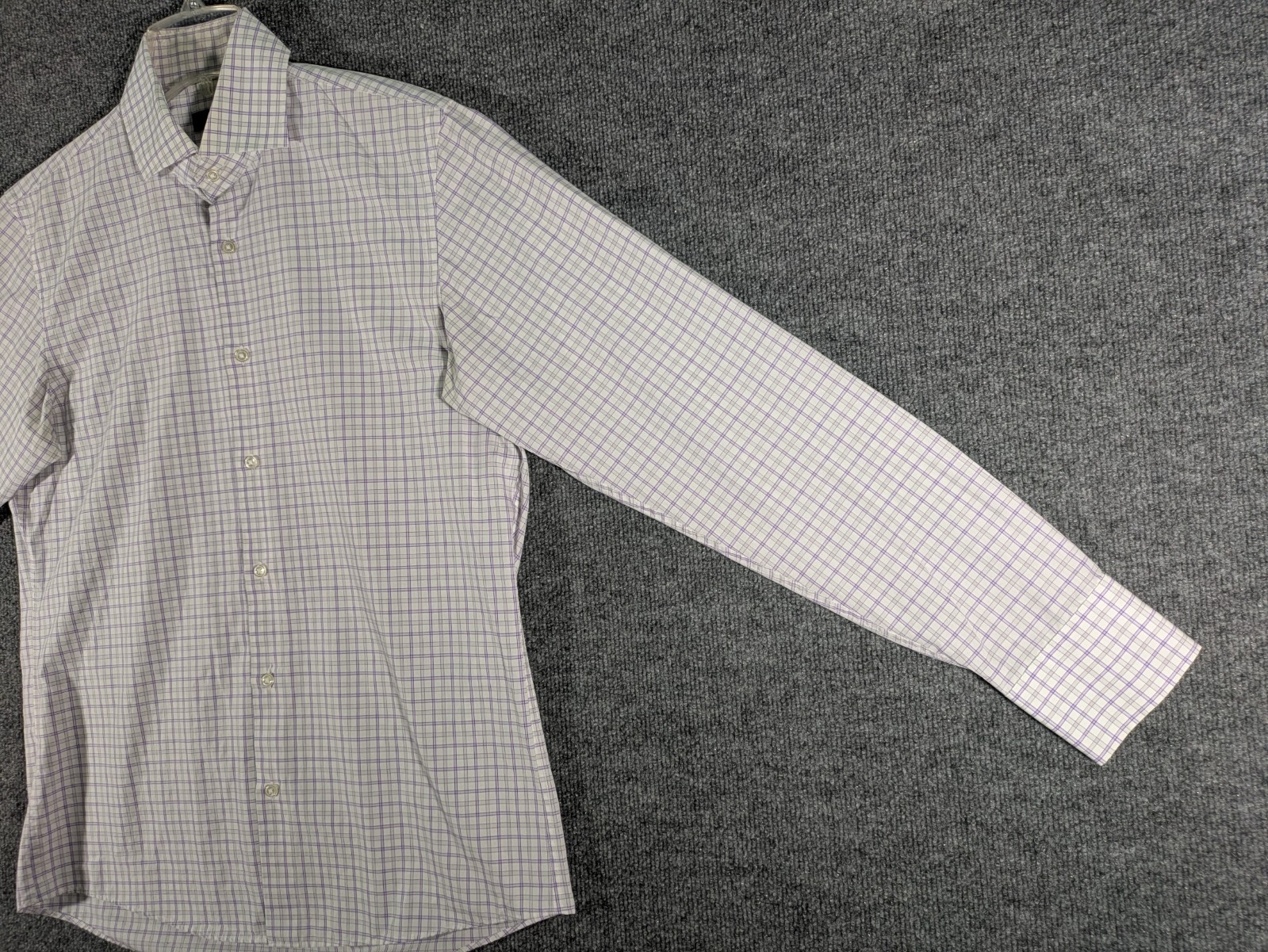 как выглядит Hugo Boss Button Up Dress Shirt Mens 15.5 34/35 White Purple Check Long Sleeve фото