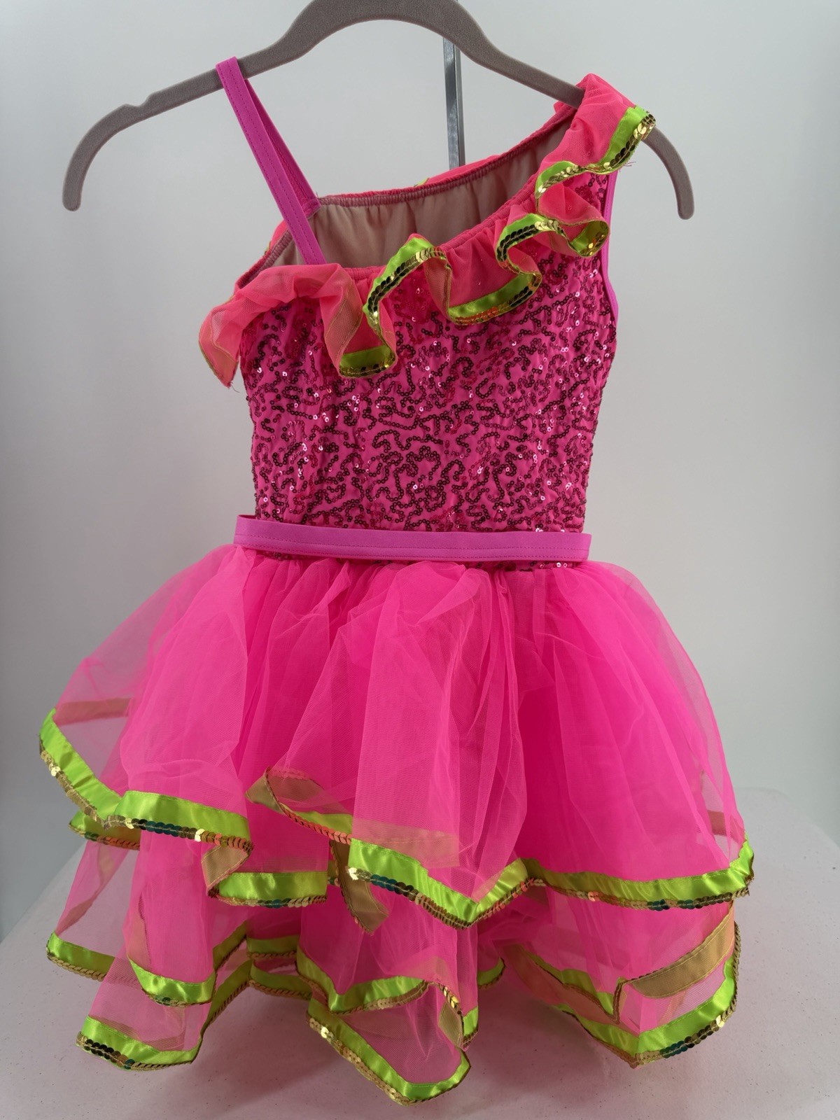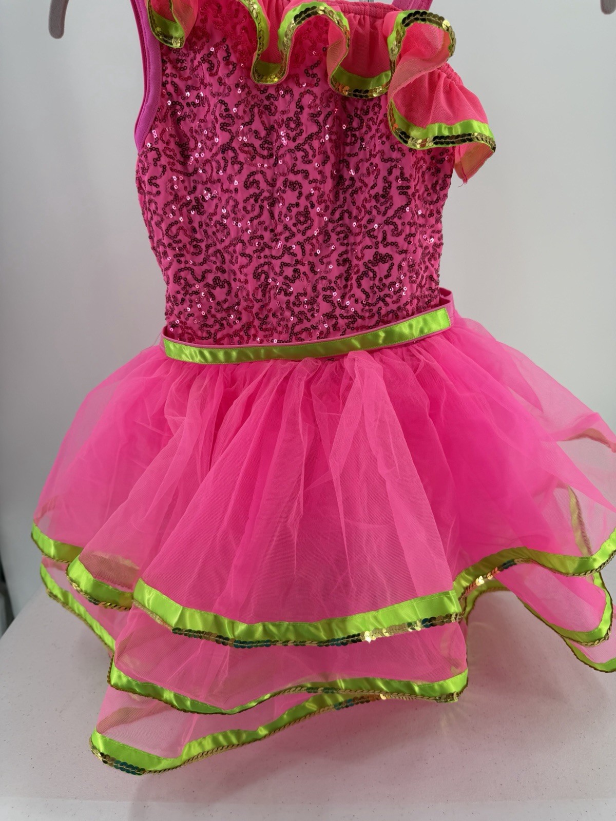 как выглядит Weissmsn Girls Dance Costume Medium 10/12 Pink Sequins Tulle Say Hey I Love You фото