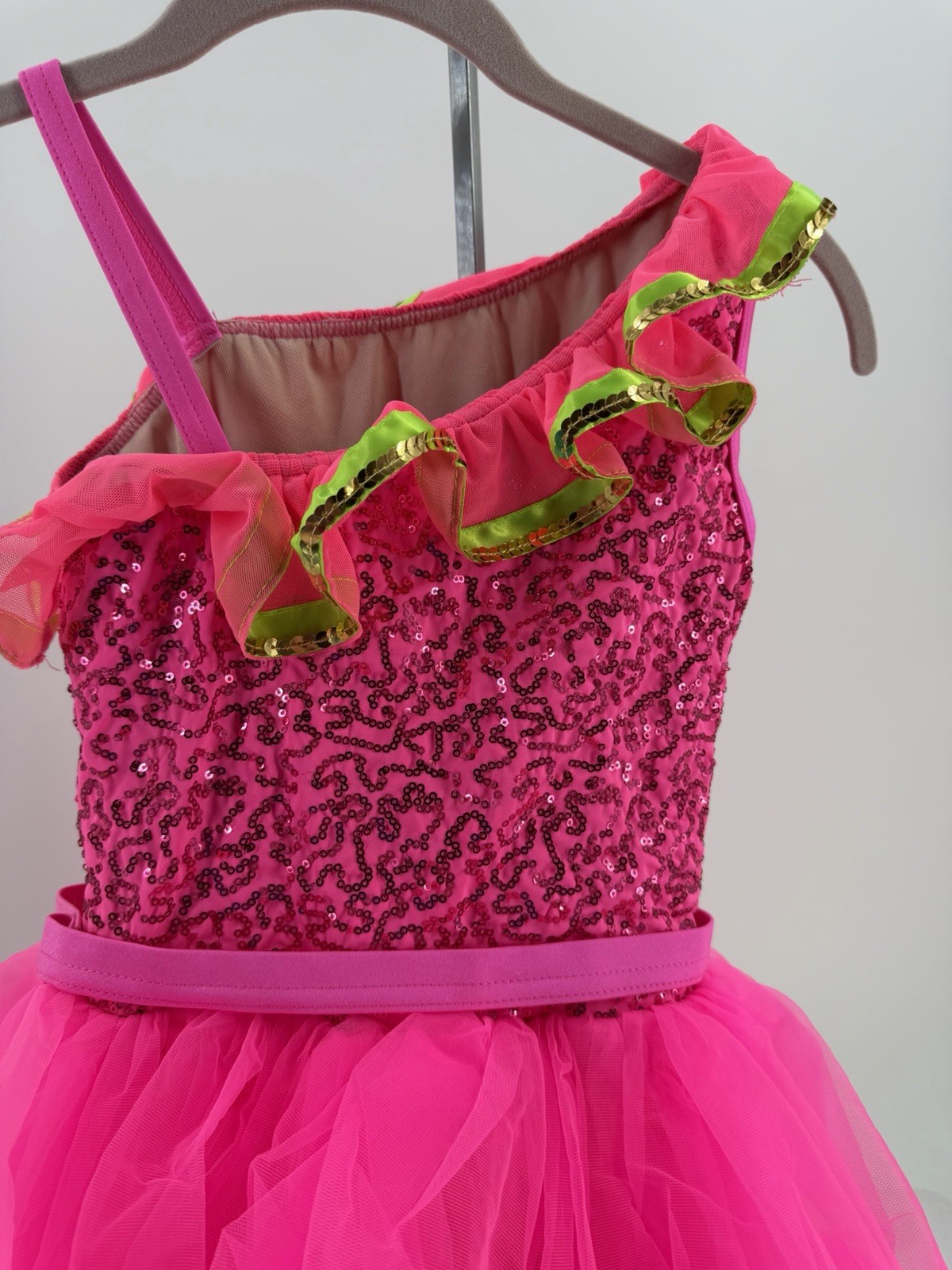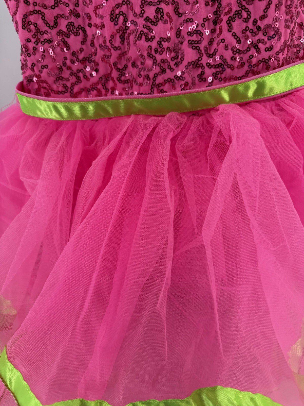 Weissmsn Girls Dance Costume Medium 10/12 Pink Sequins Tulle Say Hey I Love You