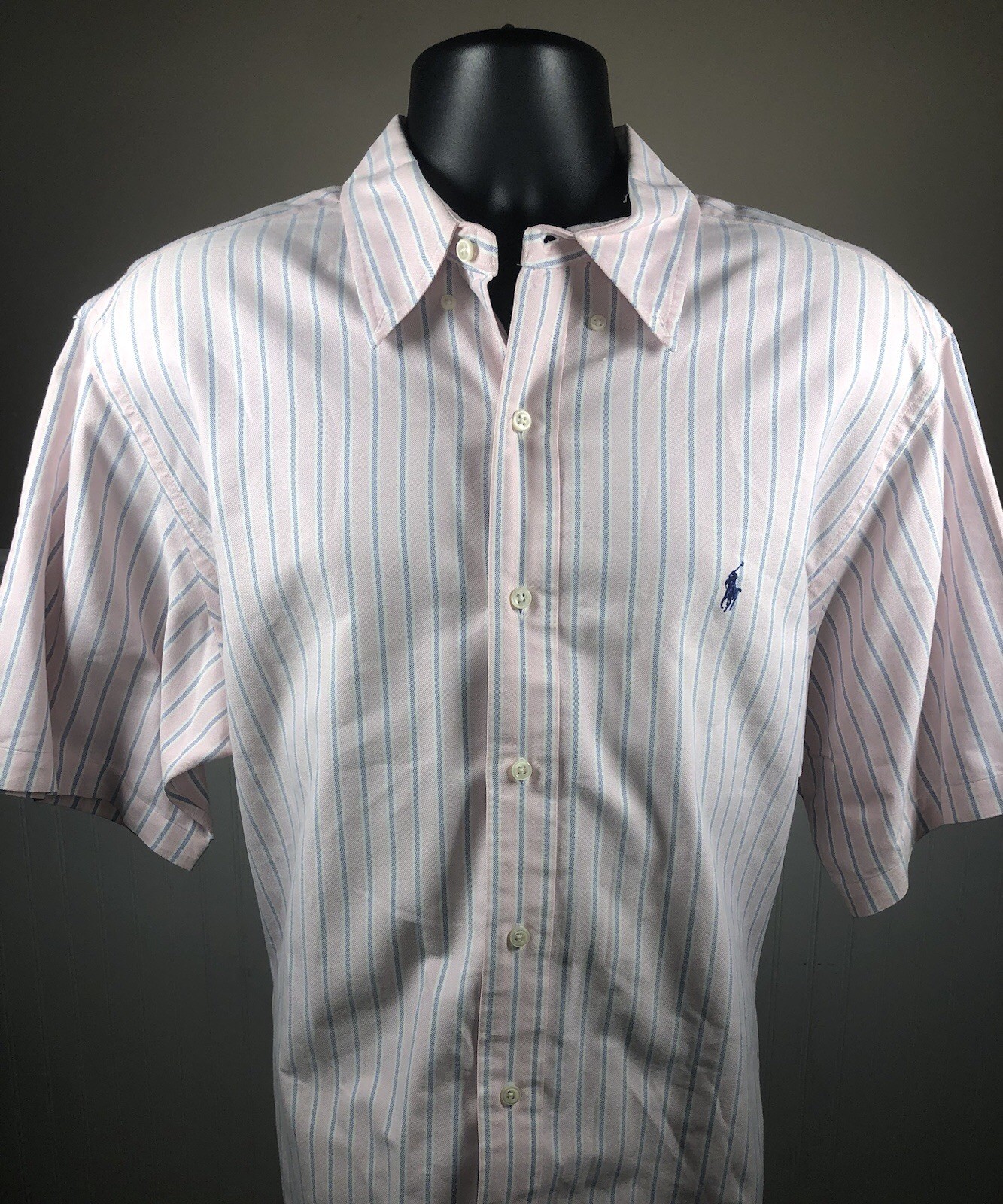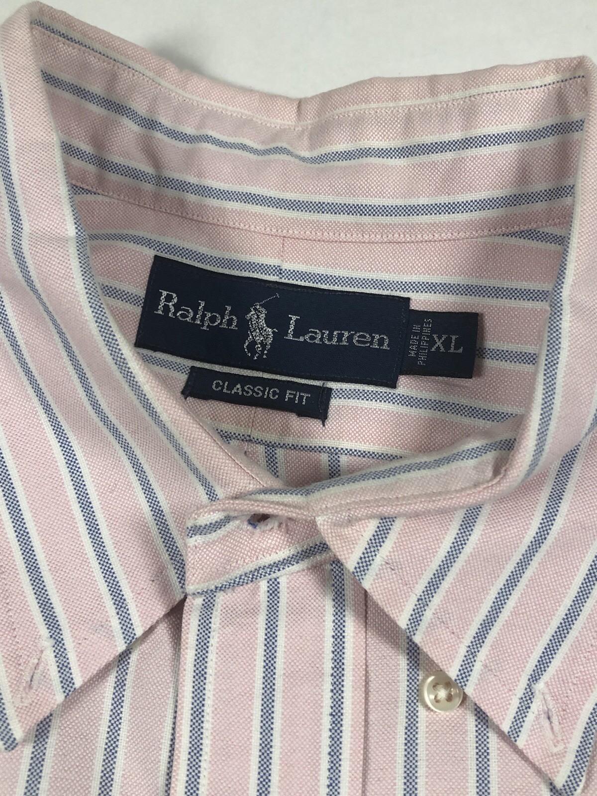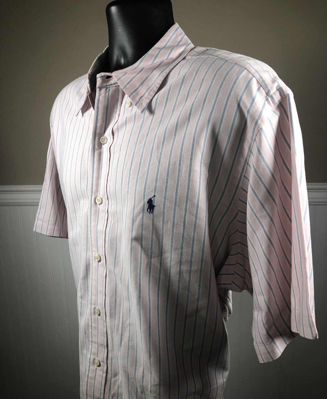 Polo Ralph Lauren Classic Fit Short Sleeve Button Down Shirt Mens XL Blue Stripe