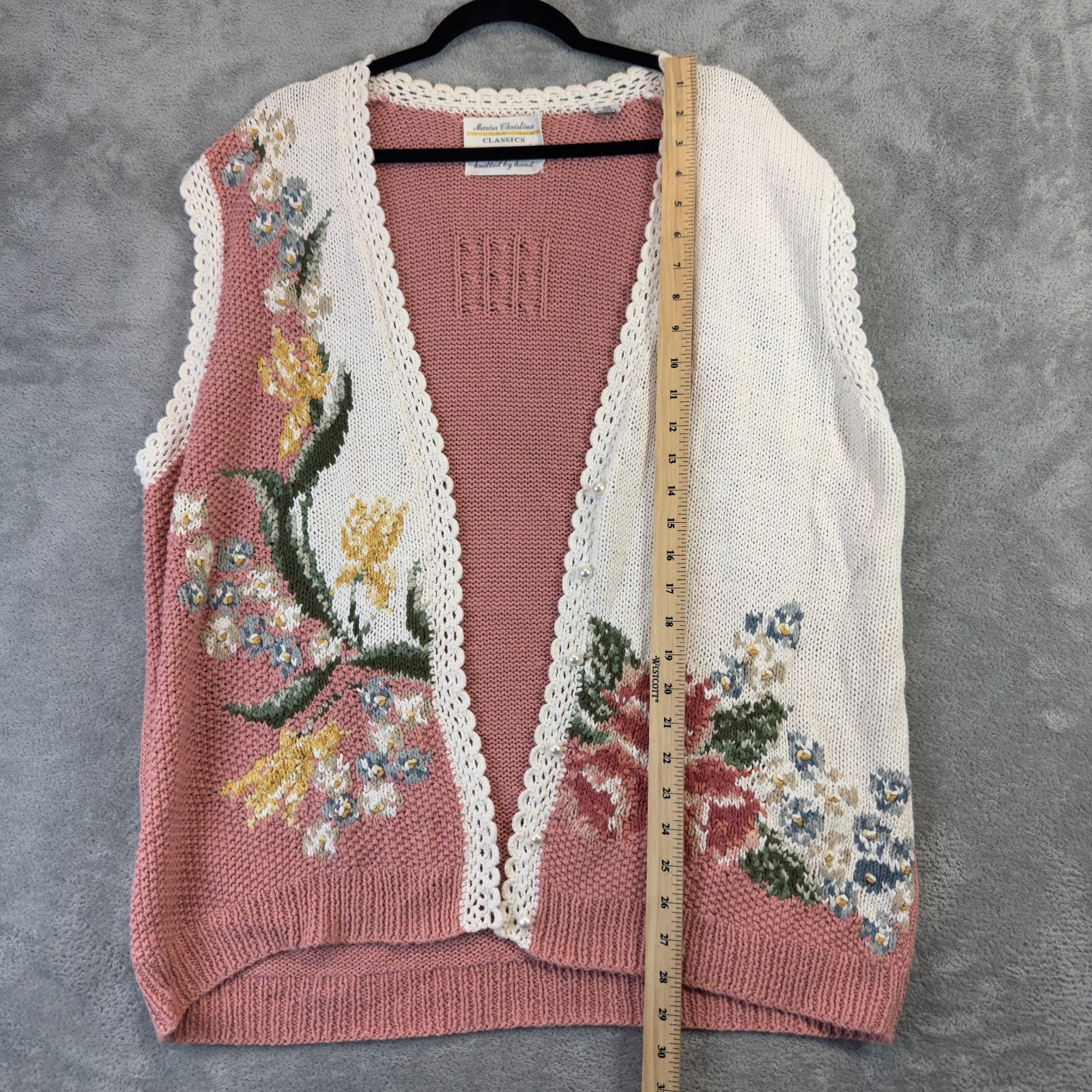как выглядит Marisa Christina Sweater Vest XL Peach Knit Floral Pearl Button Up Grannycore фото