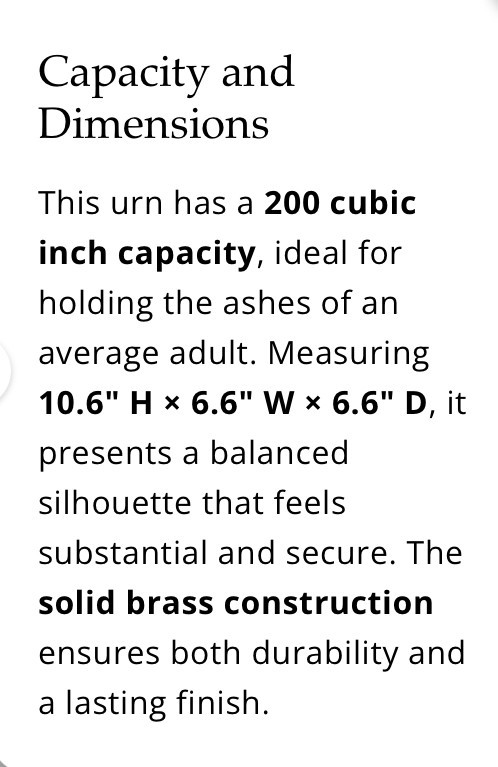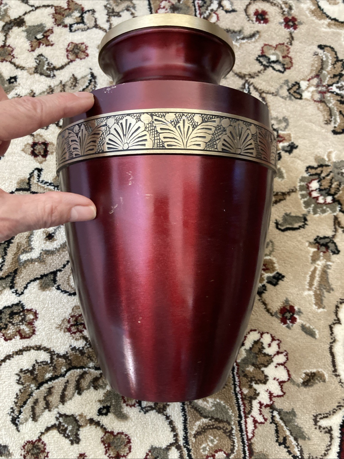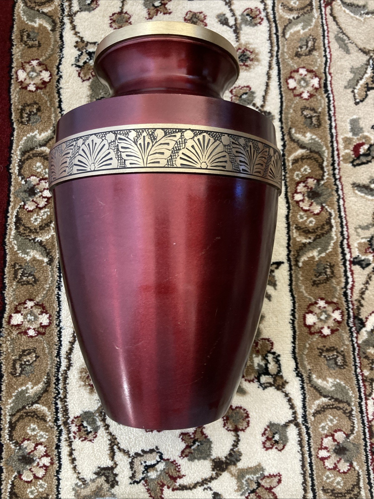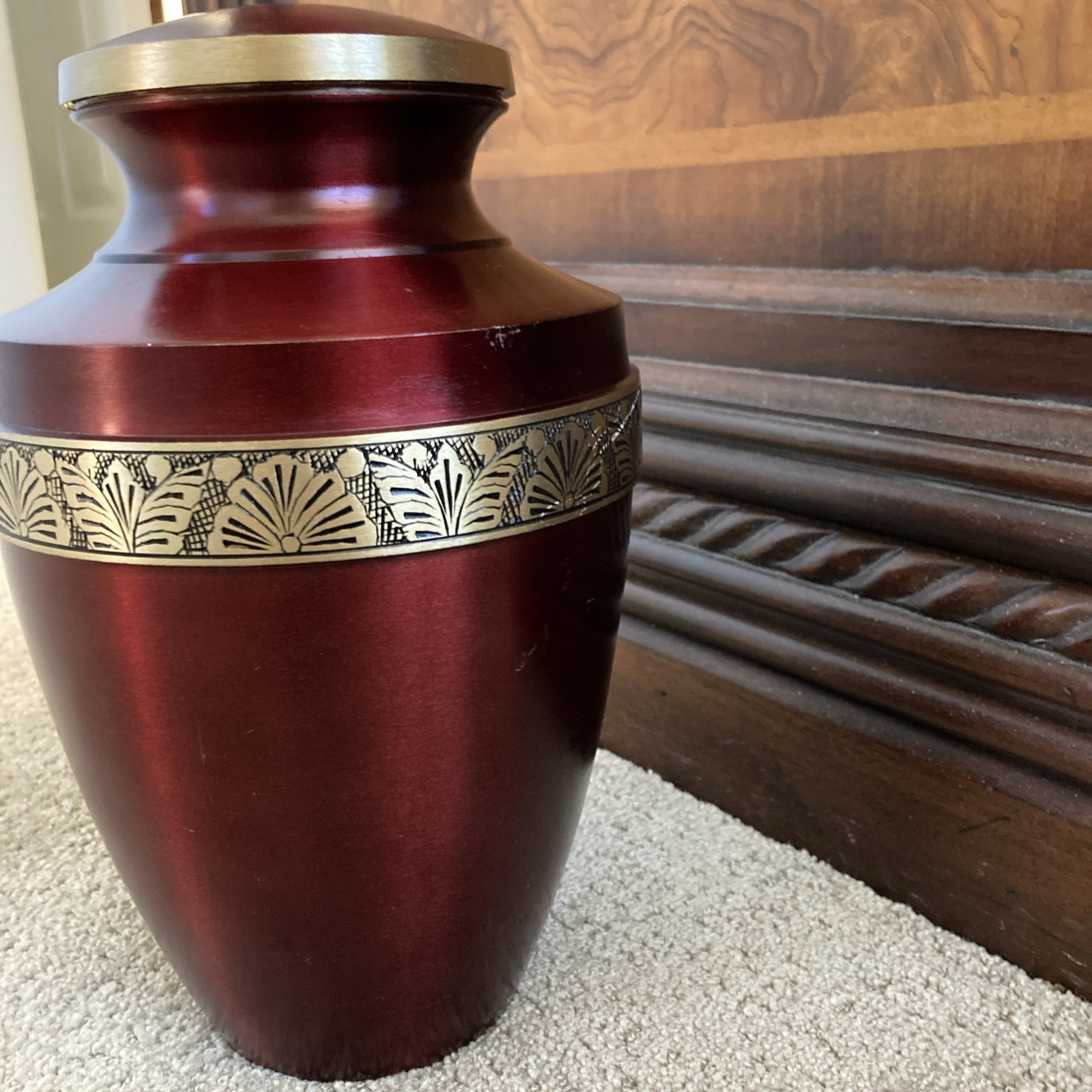 • Funeral Cremation Urn for Ashes Adult 200 Cubic Inch Brass Crimson