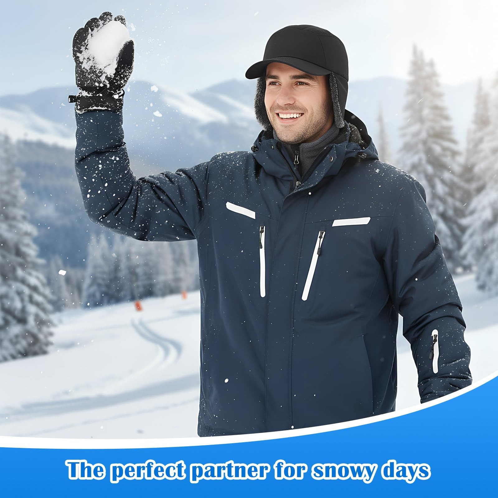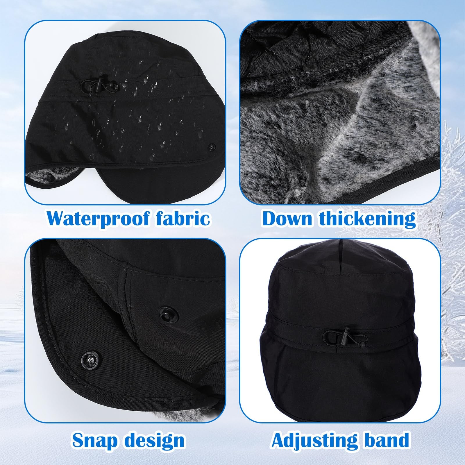как выглядит 2 Pcs Mens Waterproof Winter Hat with Visor Warm Earflaps Winter Trapper Hat... фото