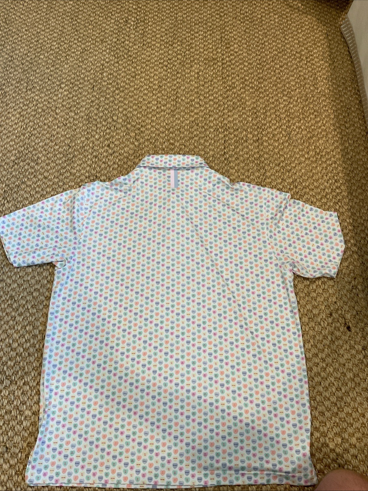 как выглядит Rhoback Performance Valentine s CONVERSATION HEARTS Polo Shirt Size Large фото