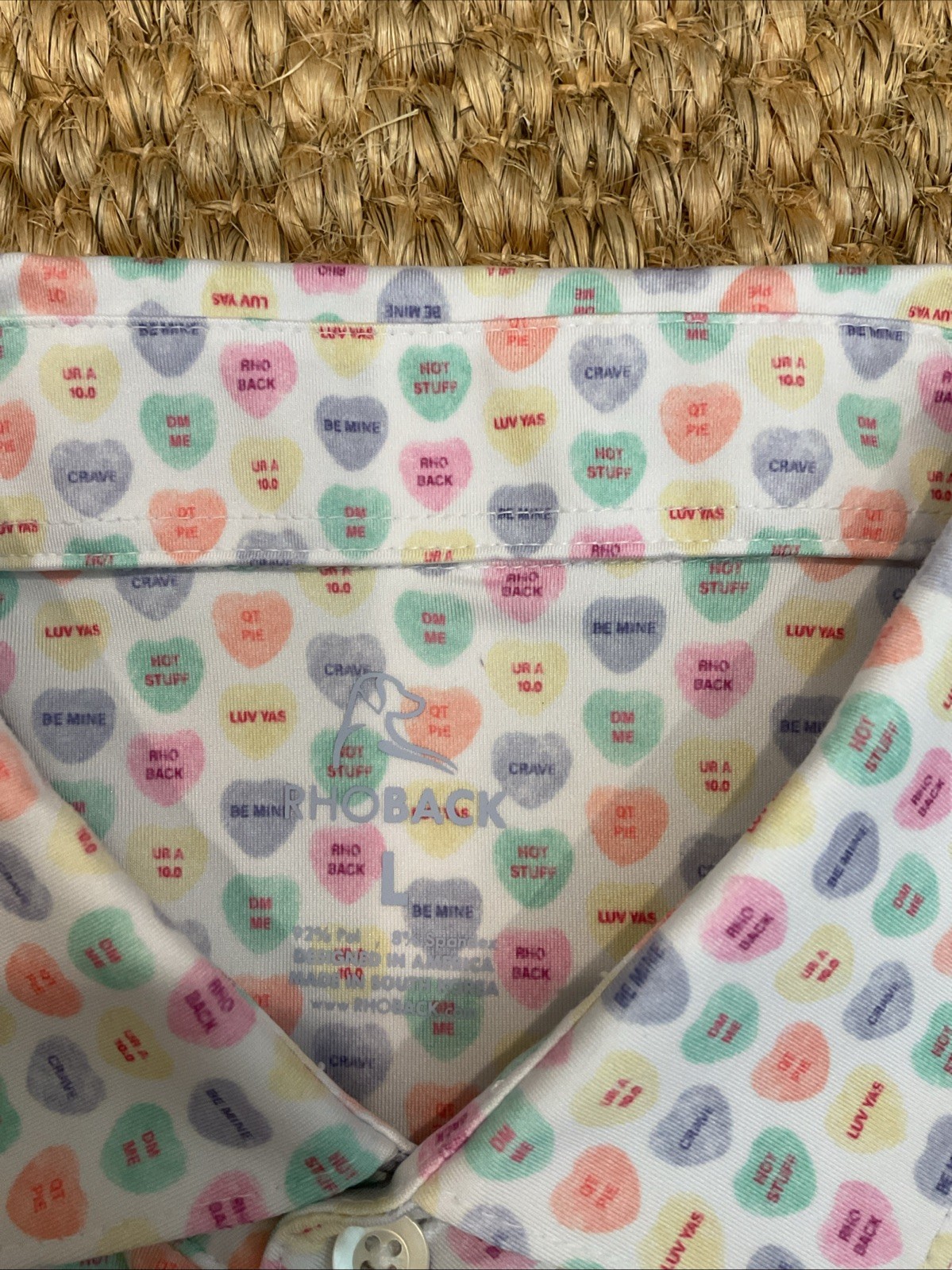 Rhoback Performance Valentine s CONVERSATION HEARTS Polo Shirt Size Large