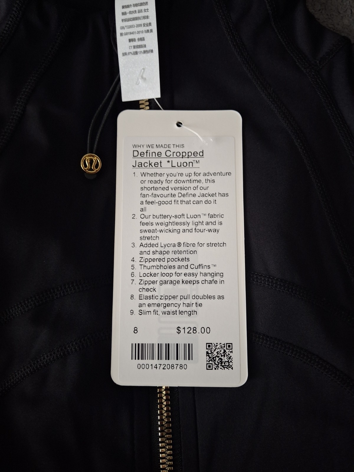 как выглядит Lululemon Define Cropped Jacket Track Pants Set Luon Black Size 8 Slim Fit фото