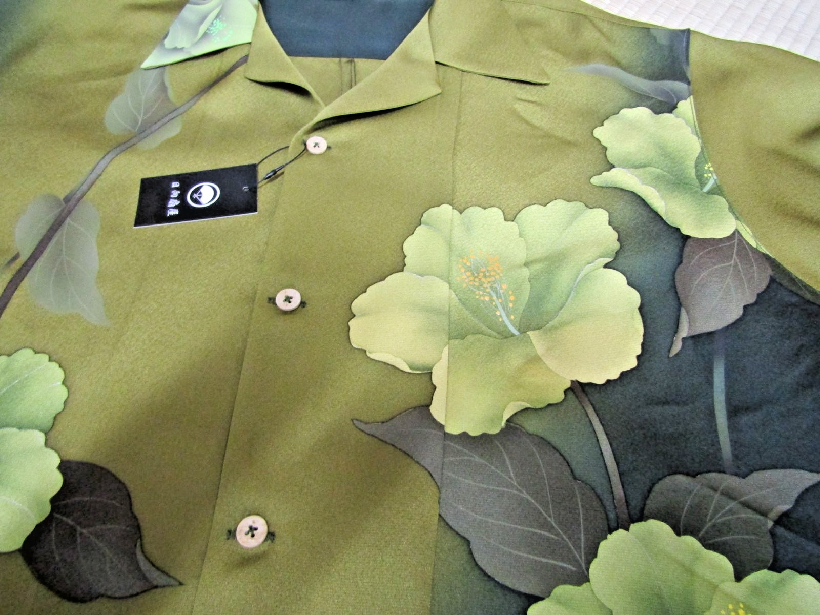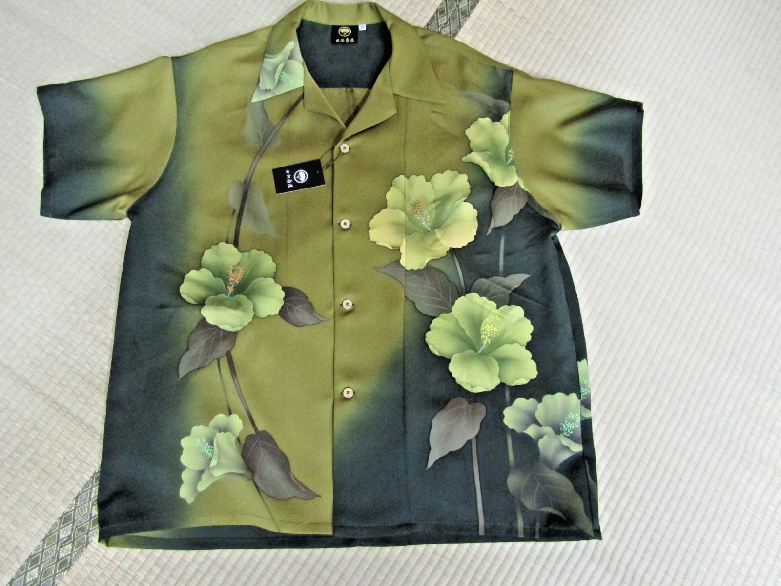 как выглядит Japanese Antique Silk Kimono Aloha Shirt Mens XL Green Floral фото