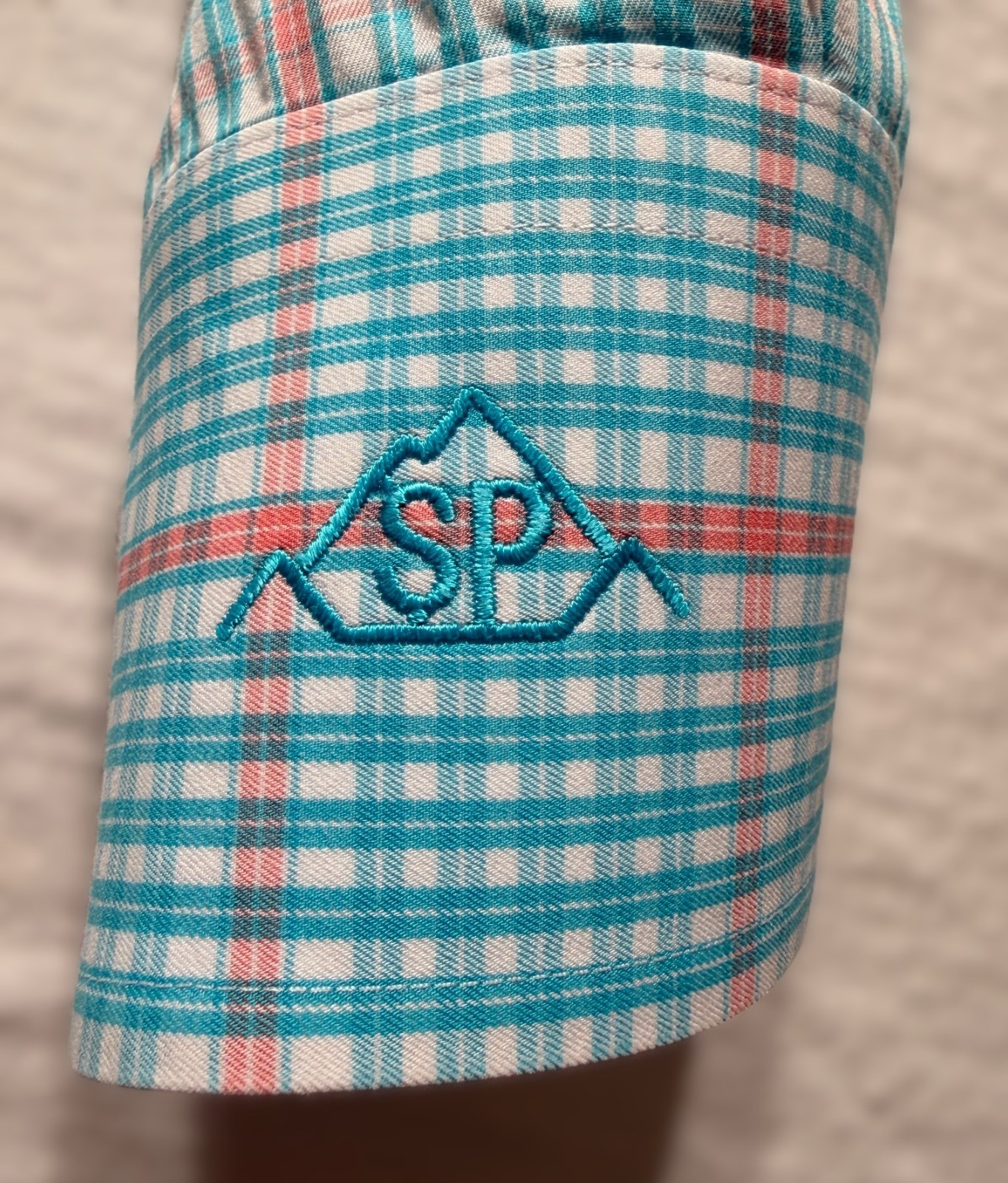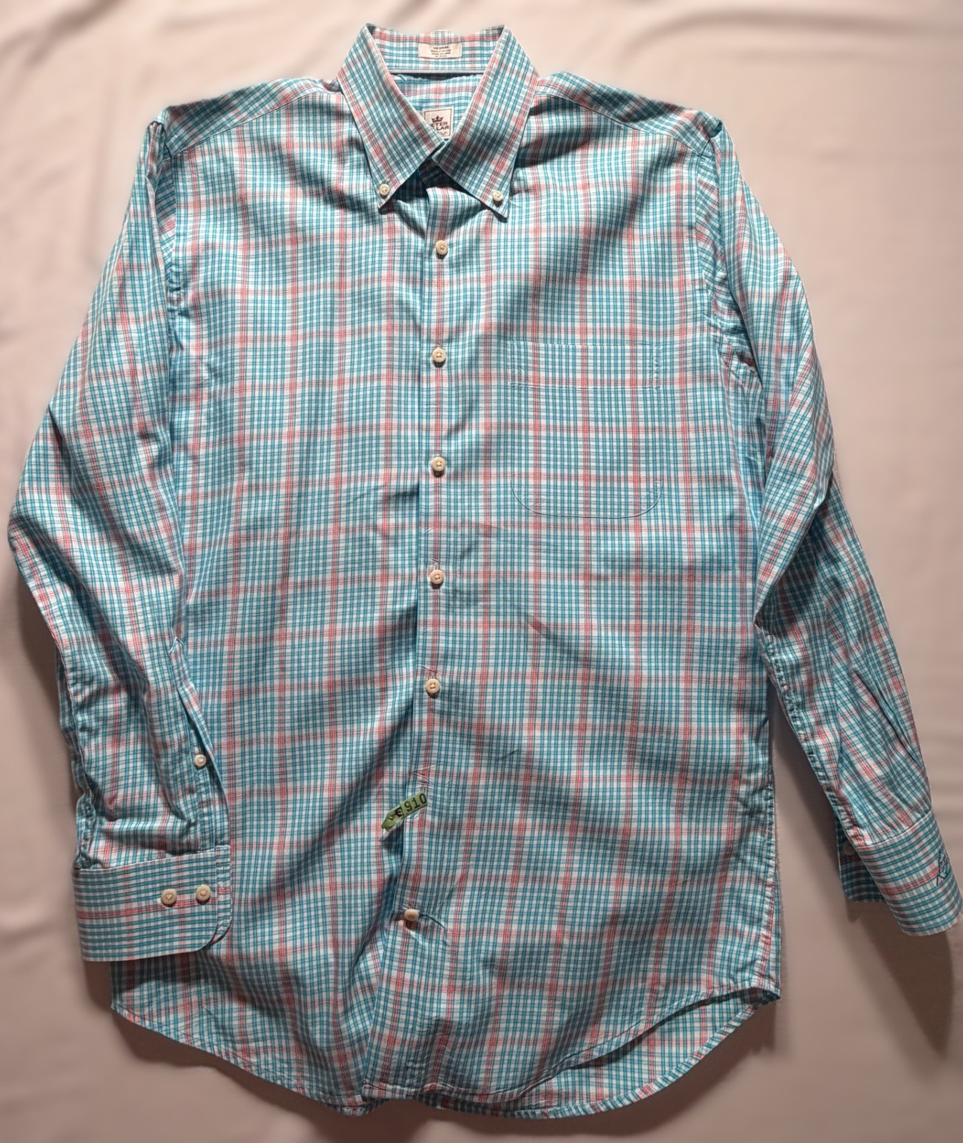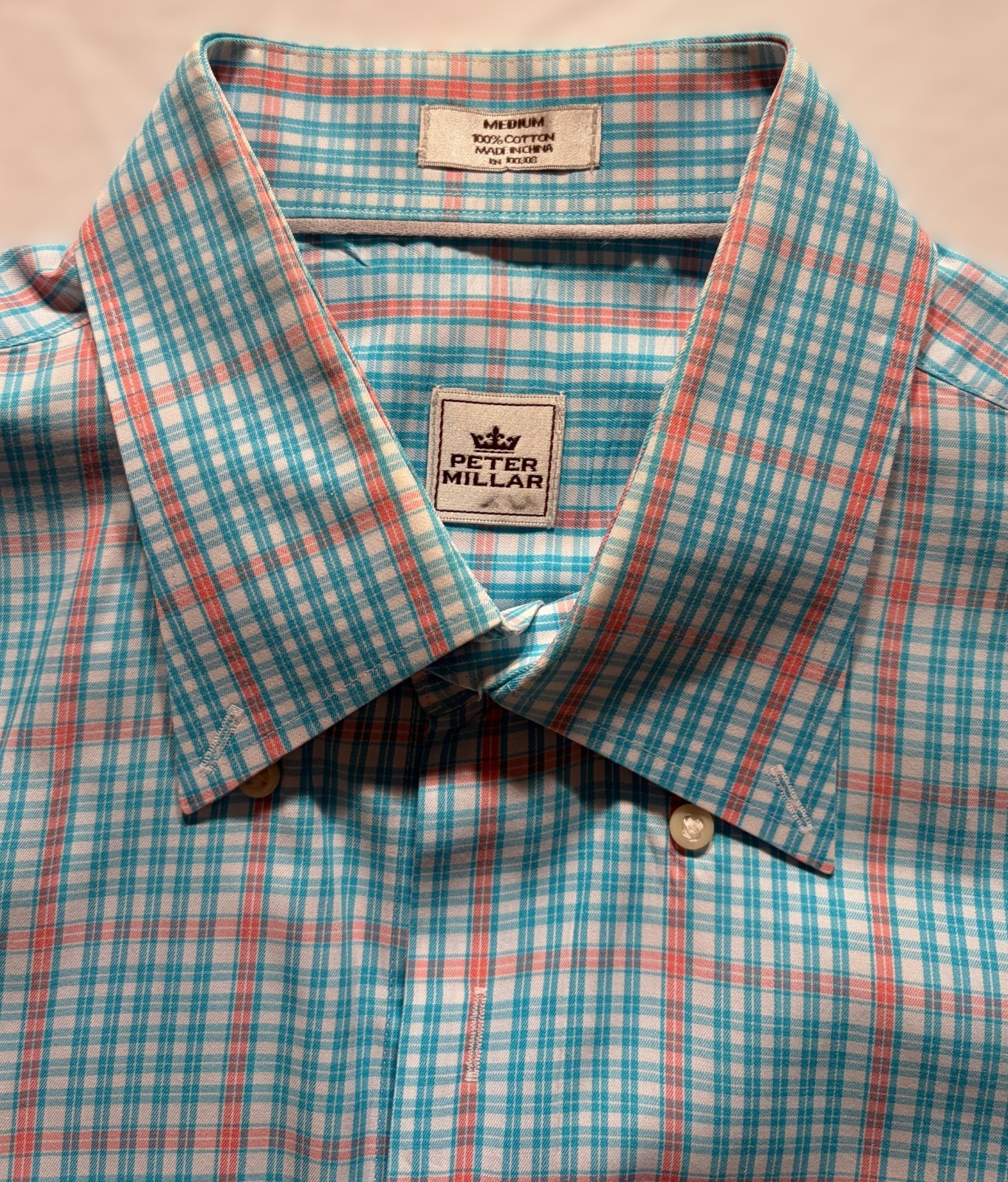 Peter Millar Medium M Plaid Button-Down Cotton Long Sleeve Blue Pink Aqua White