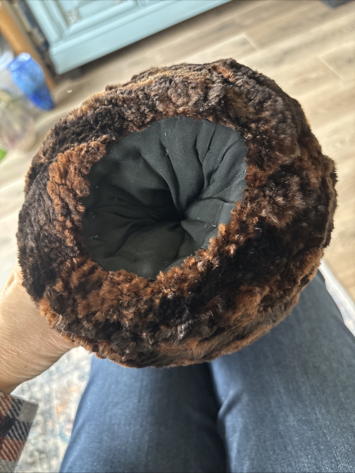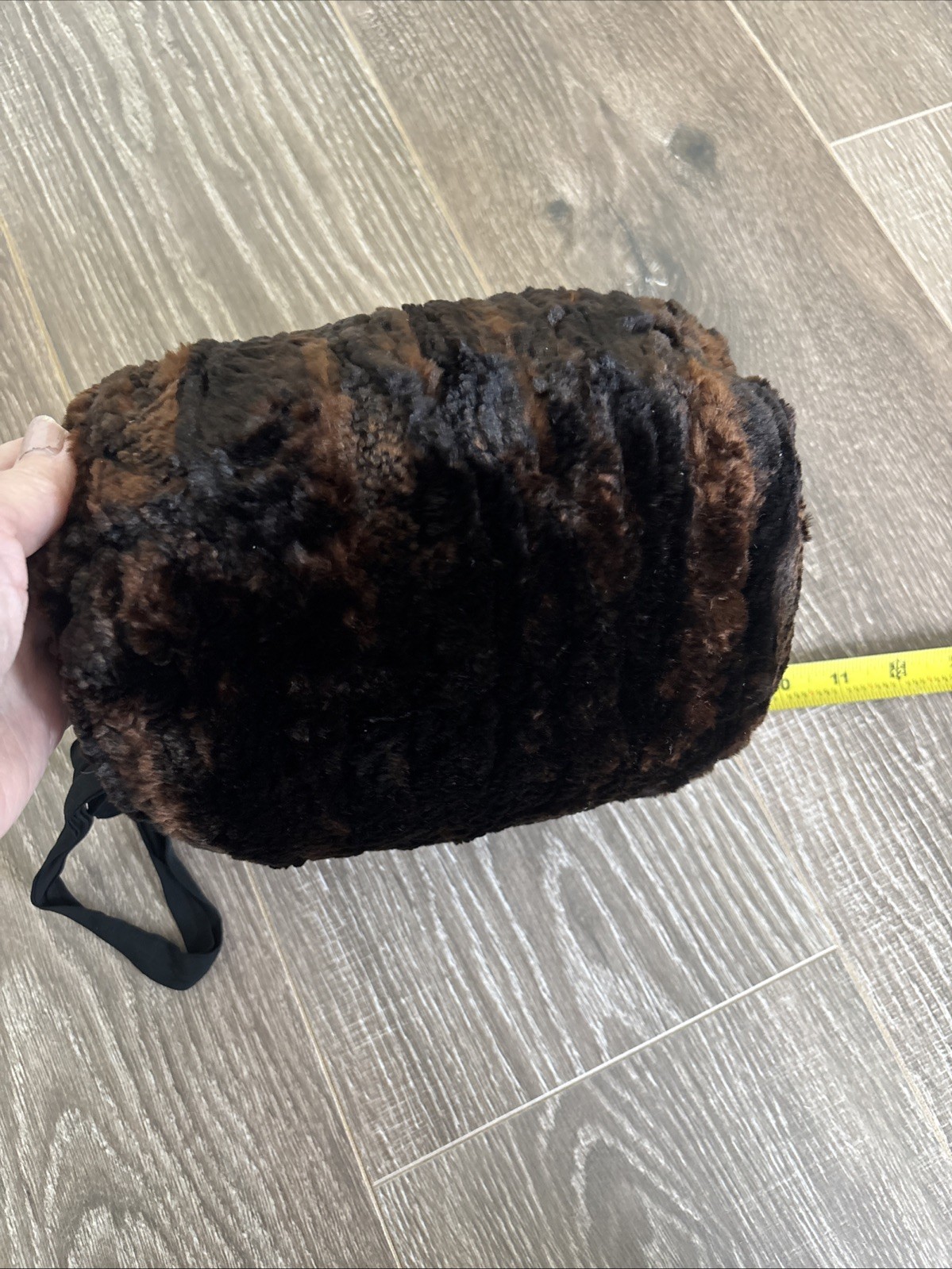 как выглядит Antique Genuine Mink Fur Hand Warmer Muff Striped Victorian Satin Lined фото