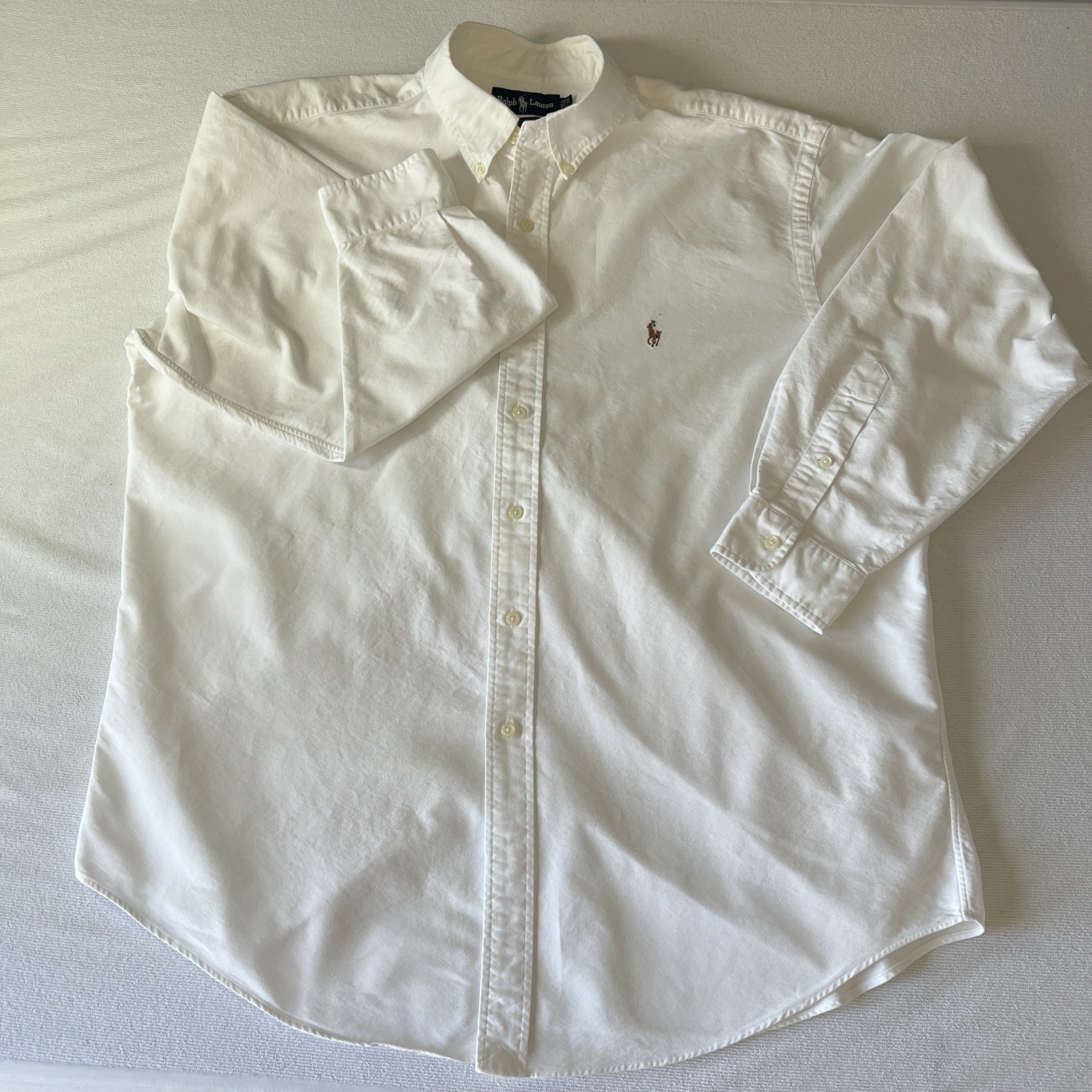 как выглядит Ralph Lauren Yarmouth Shirt Men17-34 White Cotton Oxford Button Down Long Sleeve фото