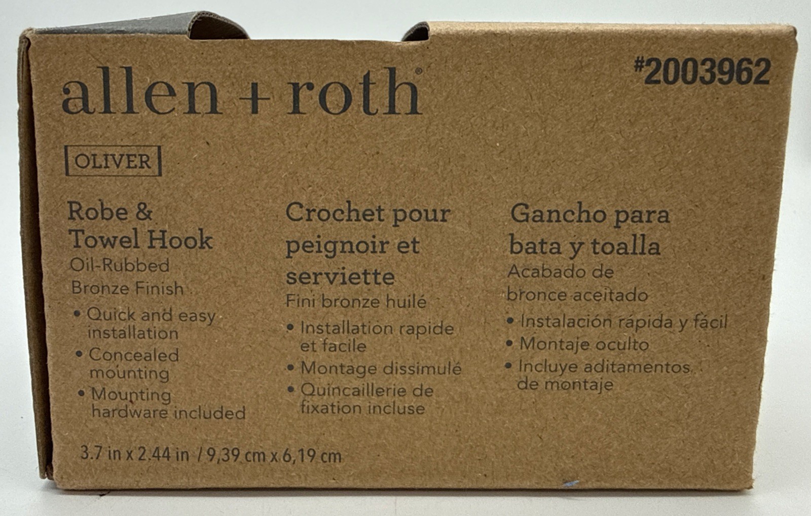 Allen Roth 2003962 Robe Towel Hook Oil-Rubbed Bronze Finish Double Hook-NEW