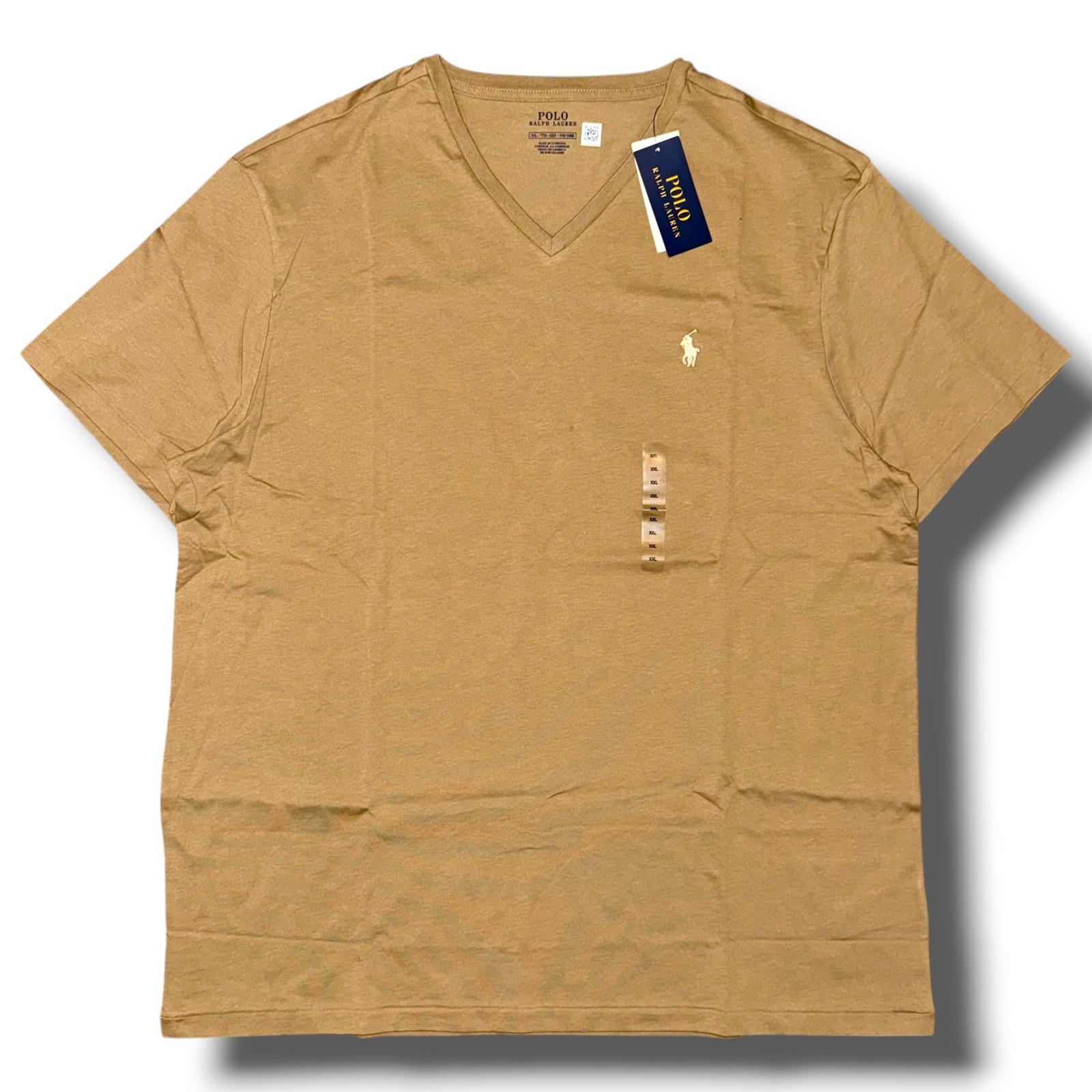 Polo Ralph Lauren Men V-Neck T-Shirt XXL Tan Khaki Cotton Short Sleeve Pony Logo