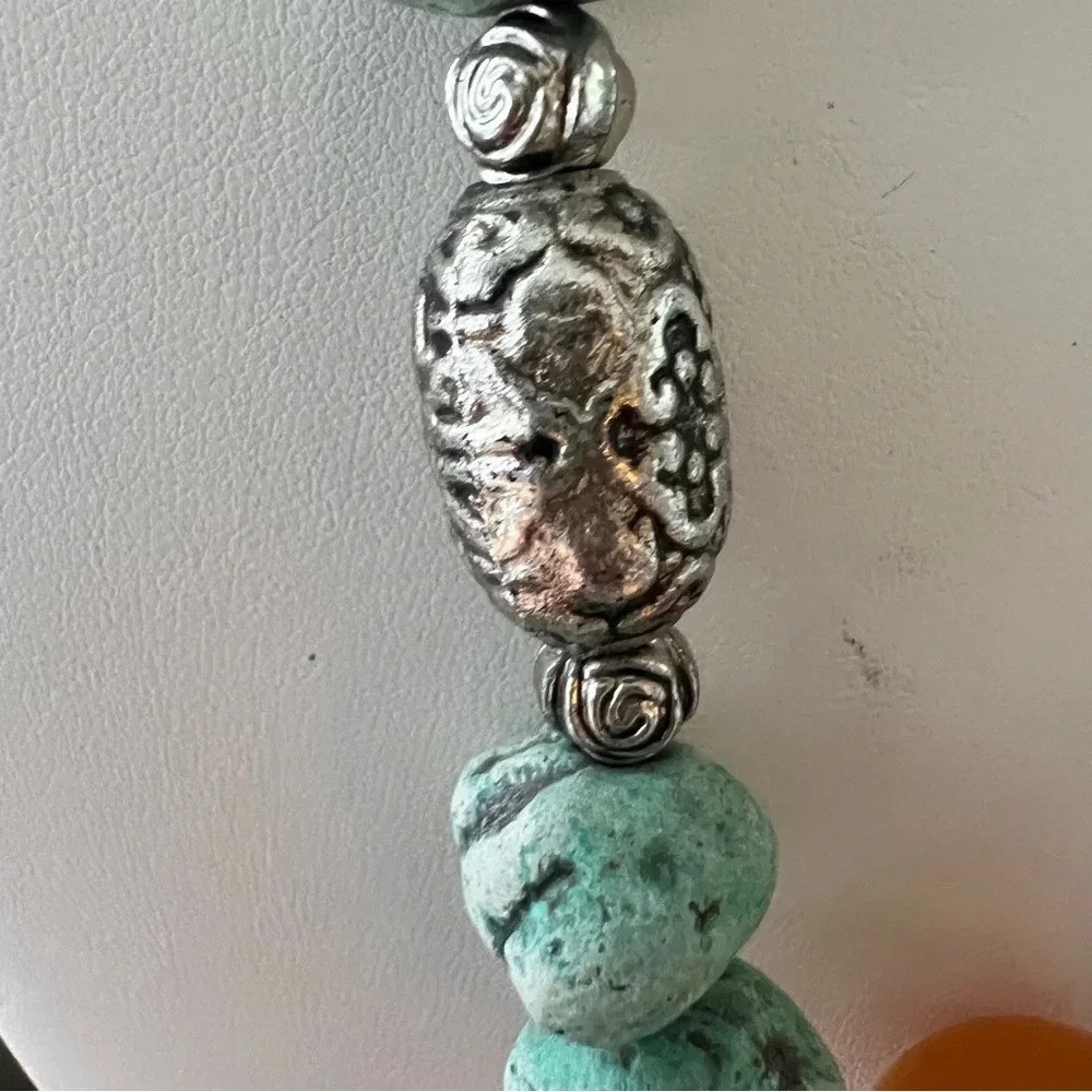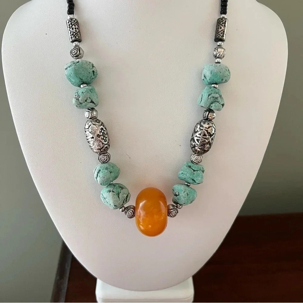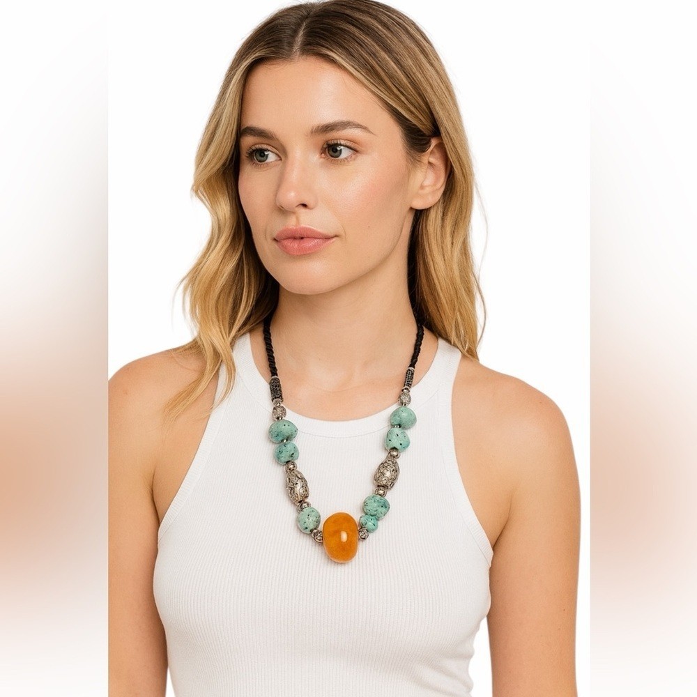Boho Statement Necklace Turquoise Style Nugget Beads Orange Pendant