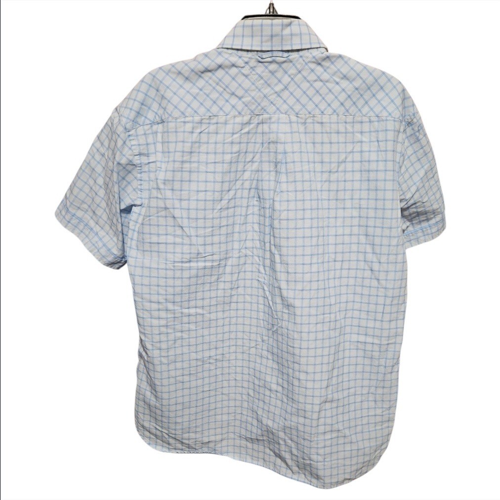 Tommy Hilfiger Mens Short Sleeve Button Down Shirt Light Blue Plaid Size Large