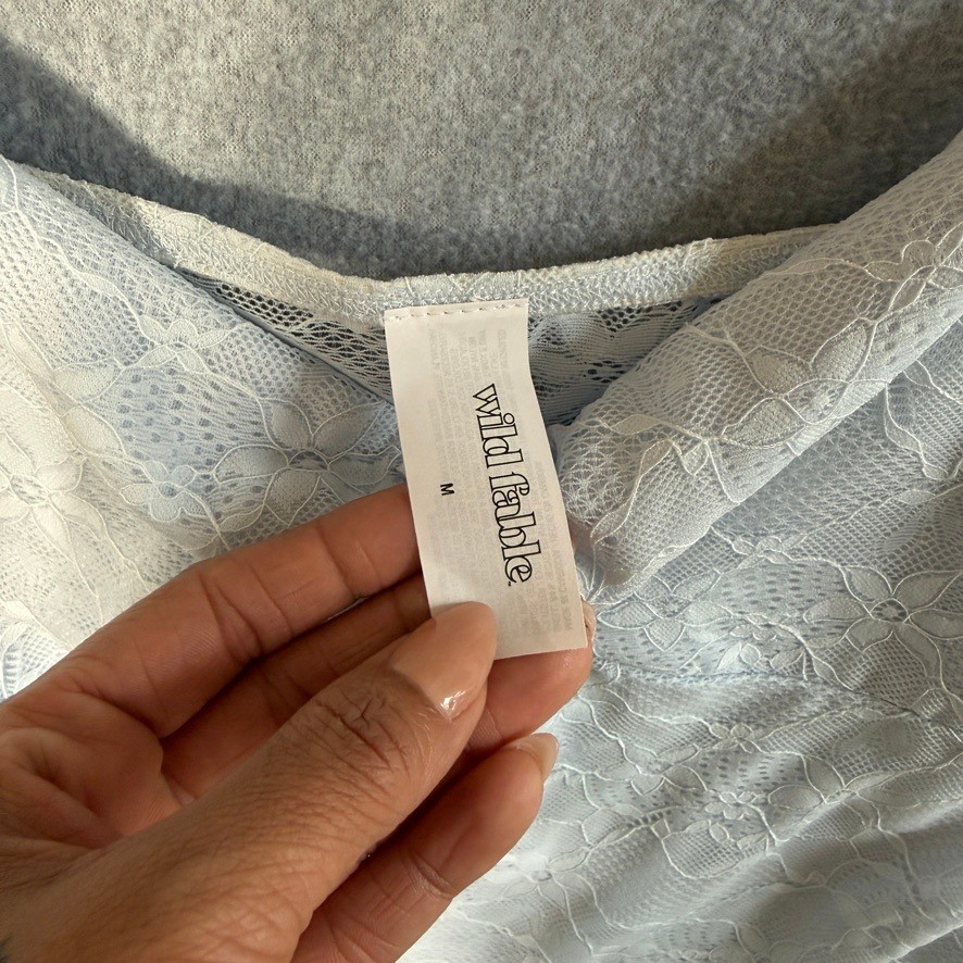 как выглядит Wild Fable Lace Camisole Coquette M Blue NWT Twist Front Spaghetti Strap фото