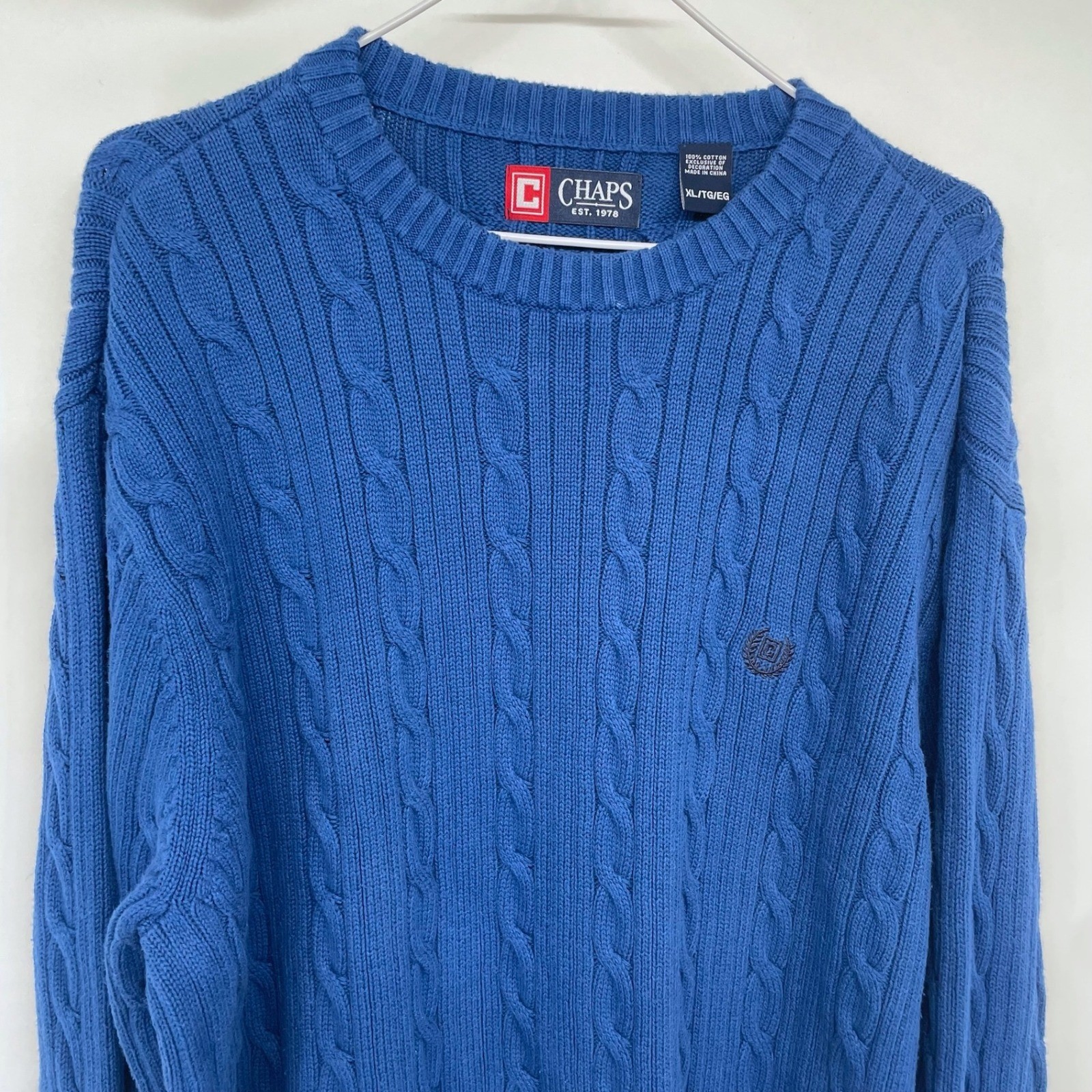 как выглядит Chaps Mens Royal Blue Cable Knit Sweater XL Classic Cotton Crew Neck Pullover фото