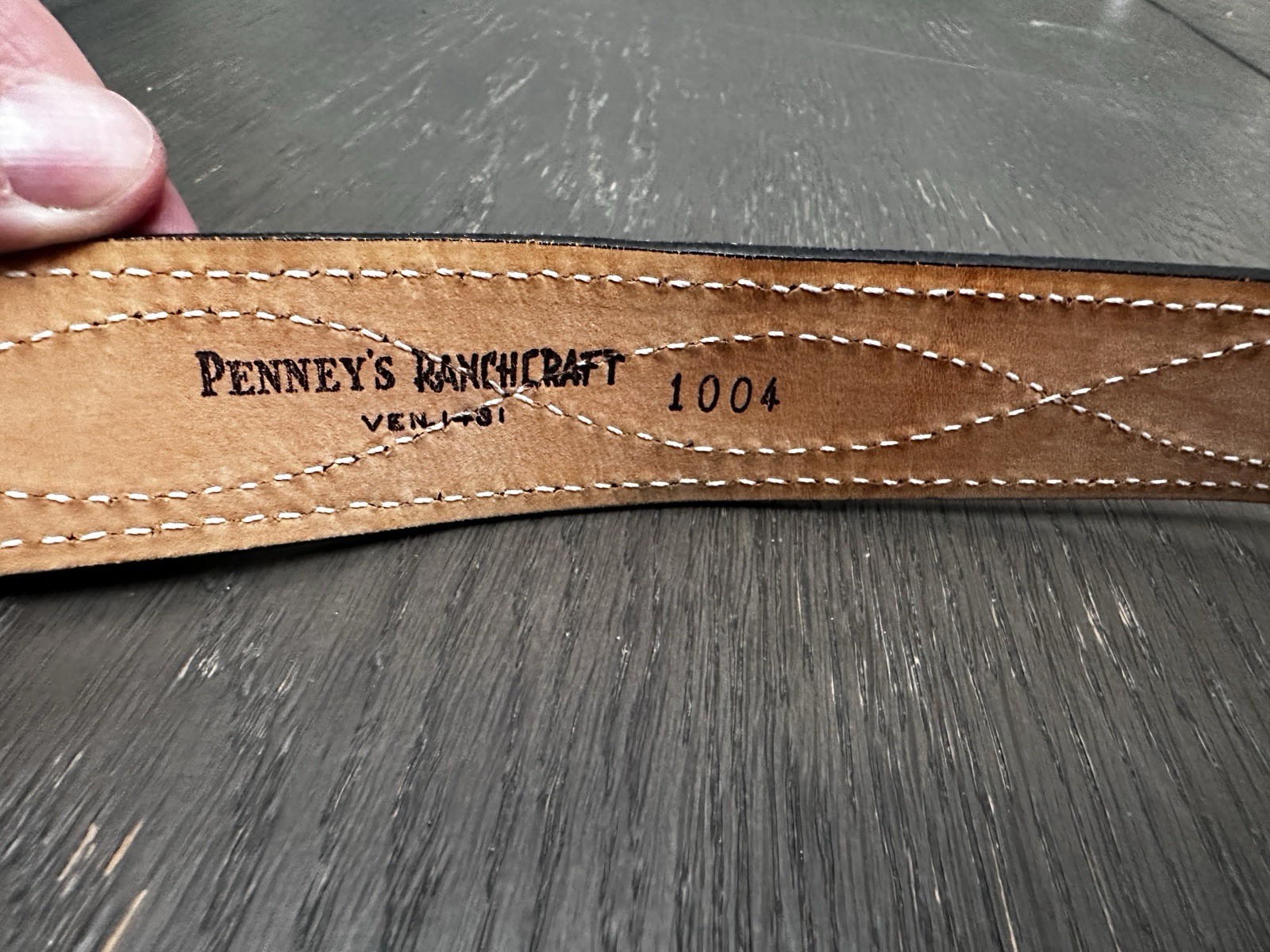 как выглядит Vintage Penny s Ranchcraft White Leather Belt handmade with Silver Buckle 34 фото