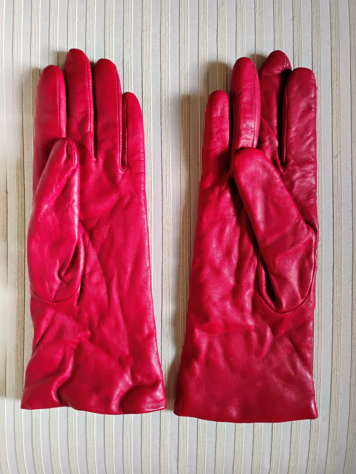 как выглядит VTG Old New Stock 1960-70s "Fowner" Red Leather with Cashmere Lining Gloves 8 фото
