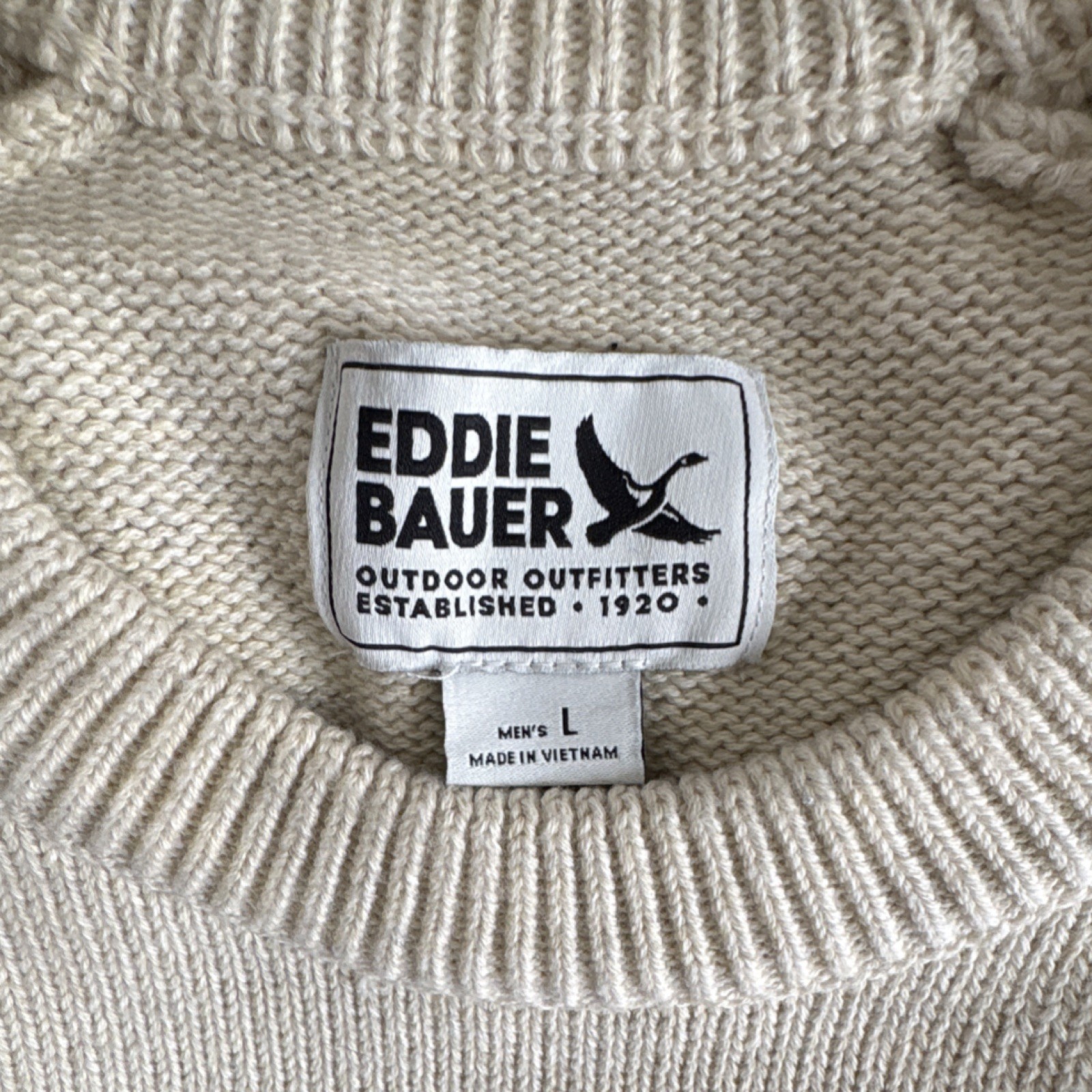 как выглядит Eddie Bauer Mens Navy Ivory Geometric Pullover Sweater Knit Cotton Crew Neck L фото