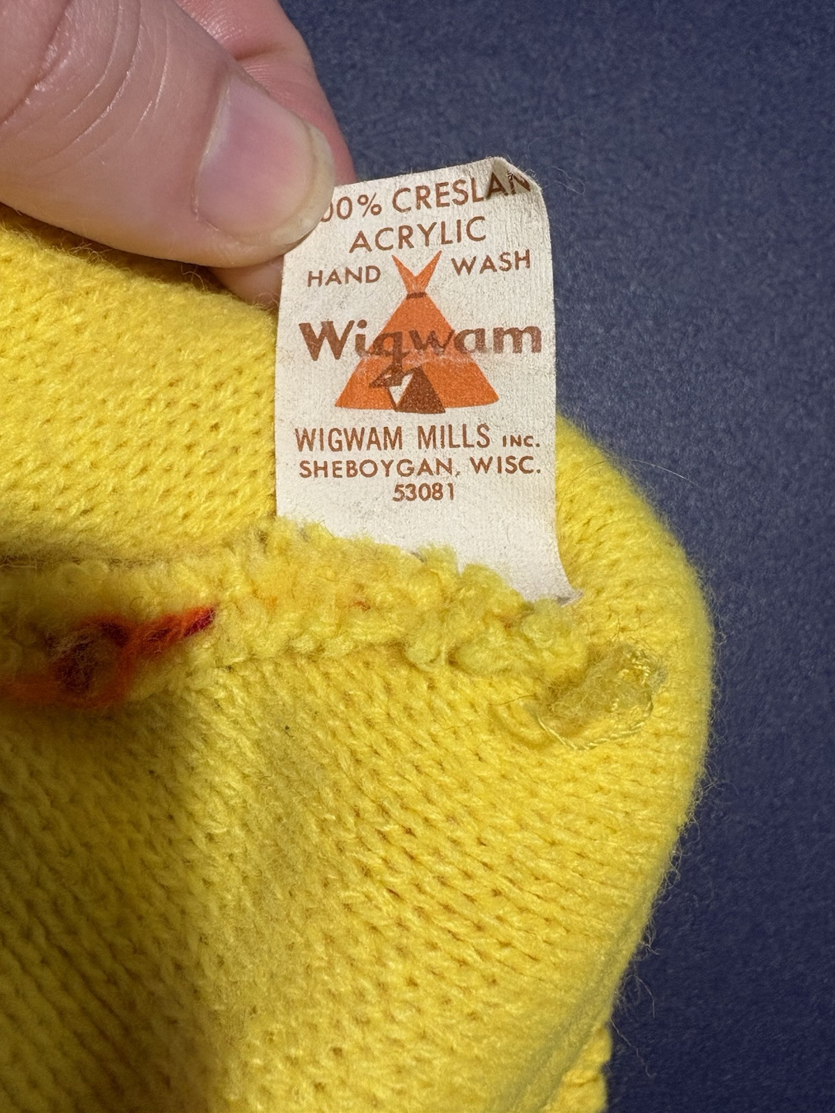 Vintage Wigwam Winter Ski Sock Hat Beanie Pom Pom Yellow Orange Gold