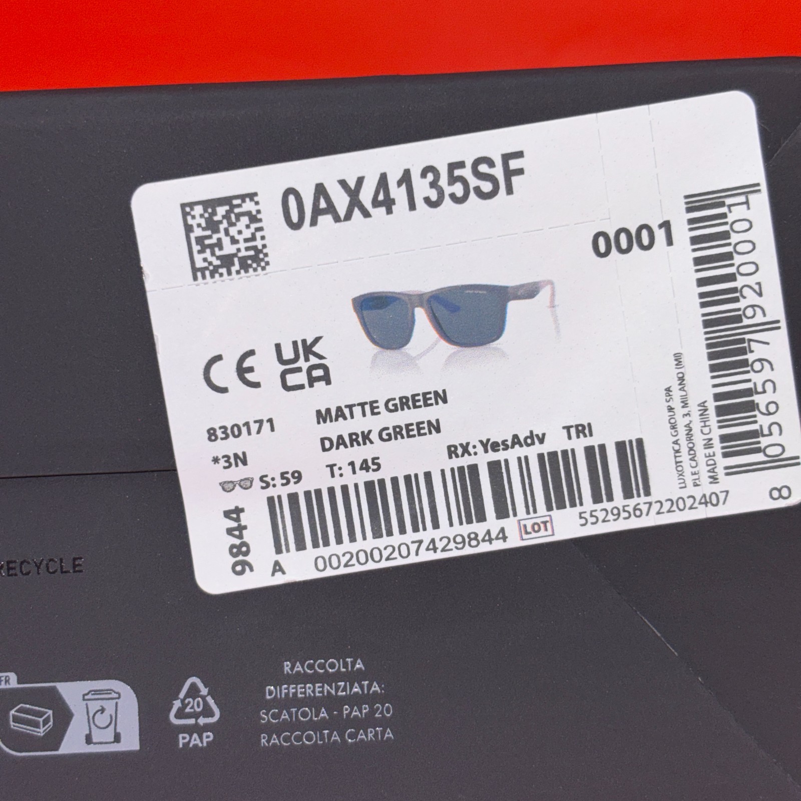 как выглядит Armani Exchange Mens Sunglasses w/ Matte Olive Green Frame Dark Gray Lens 1250 фото