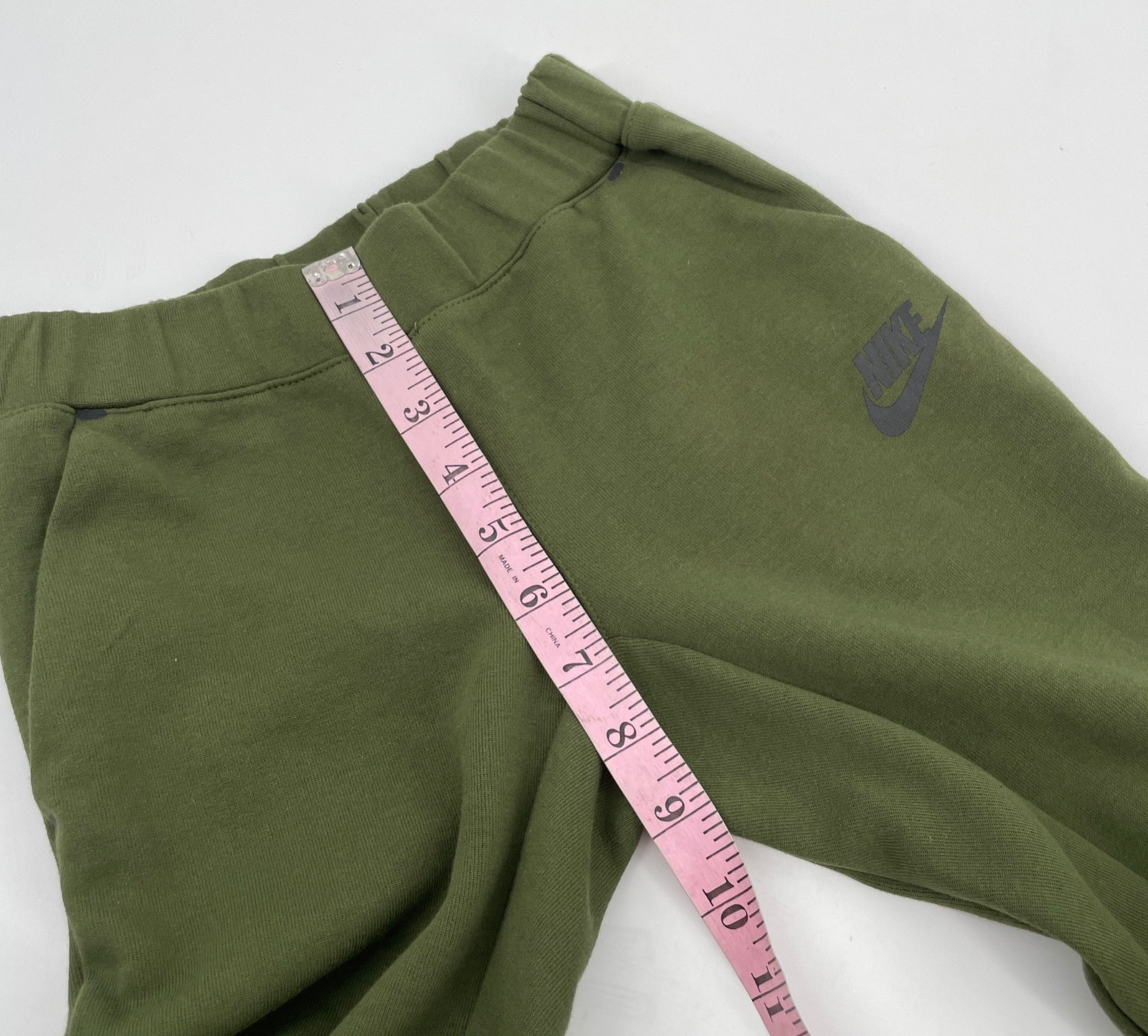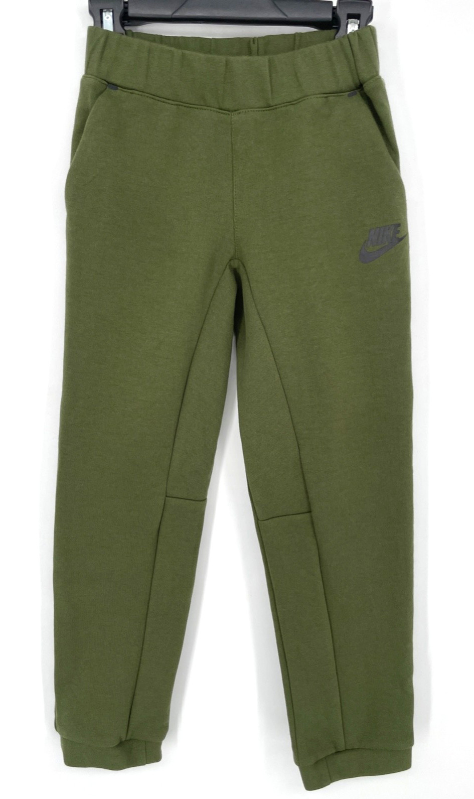 как выглядит Nike Sportswear boys 6-7 years Tech Fleece Sweat Track Pant green solid slim fit фото