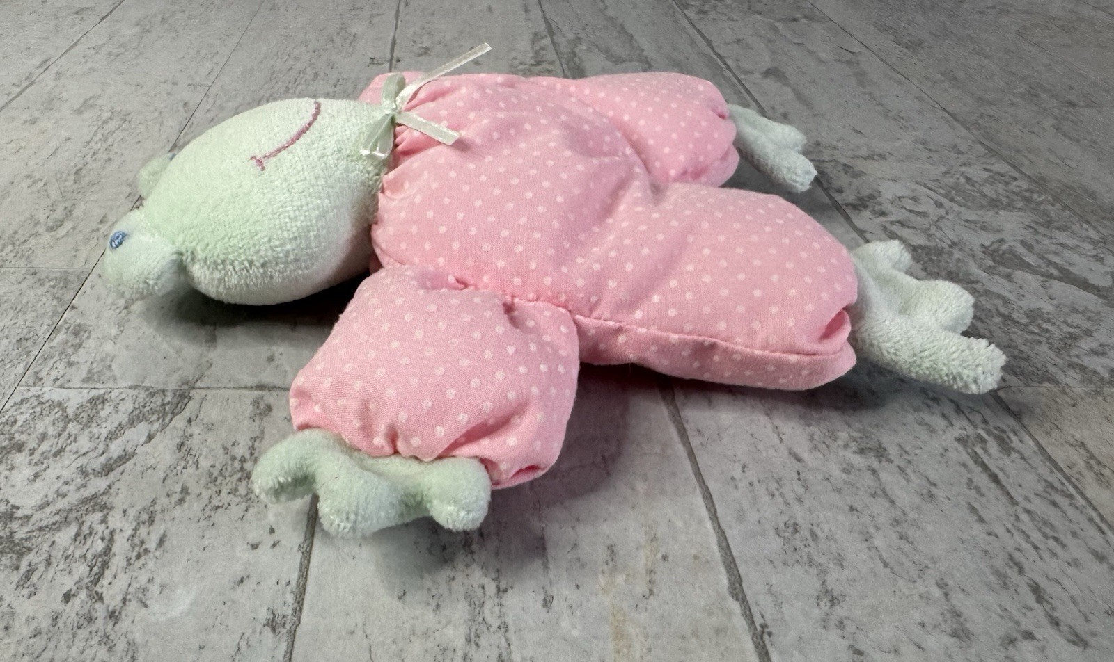 Eden Pink Frog Rattle Stuffed Animal Plush Baby Polka Dot Terrycloth Rattle 8