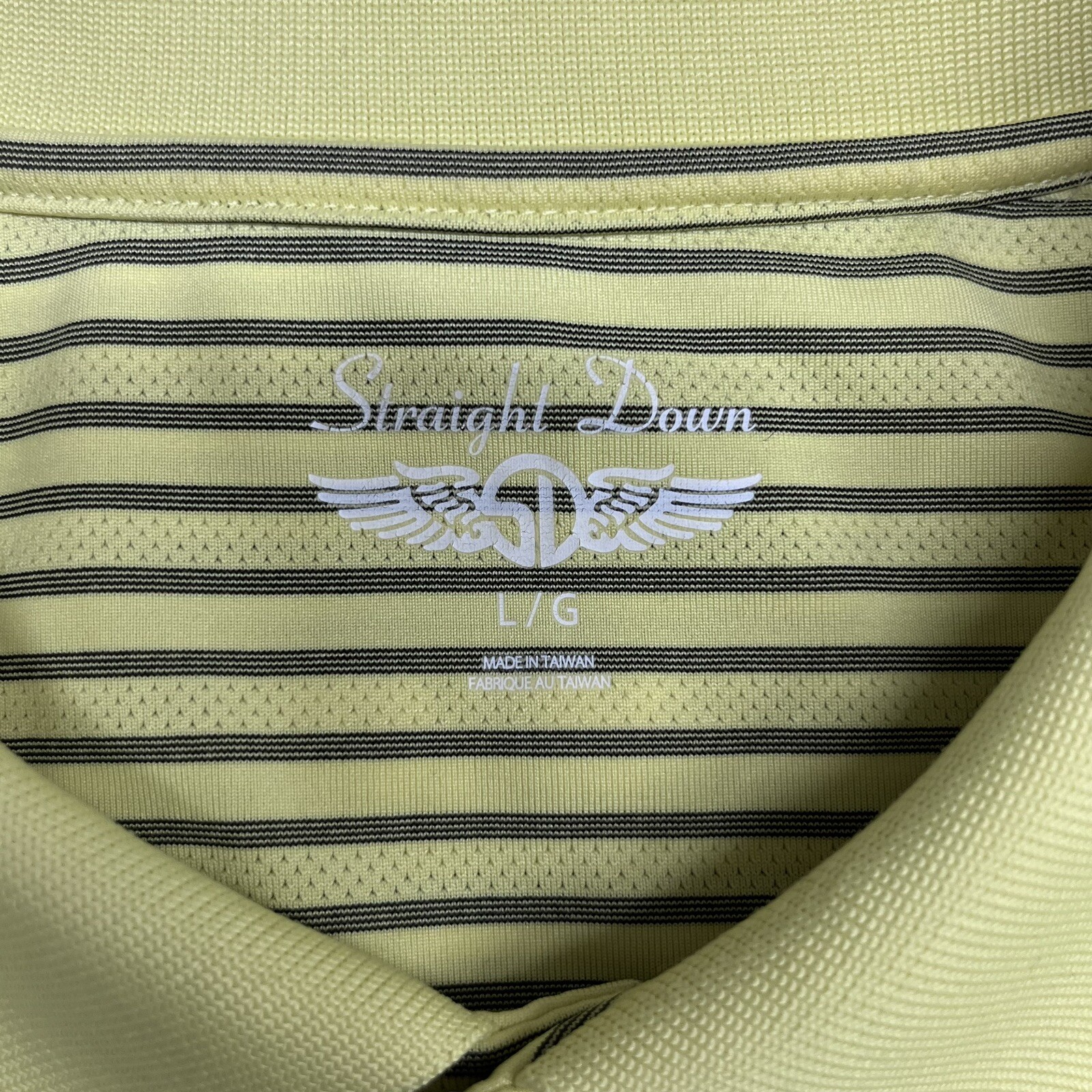 Straight Down Men's Golf Polo Shirt Yellow Striped 100 Polyester Size Large euc