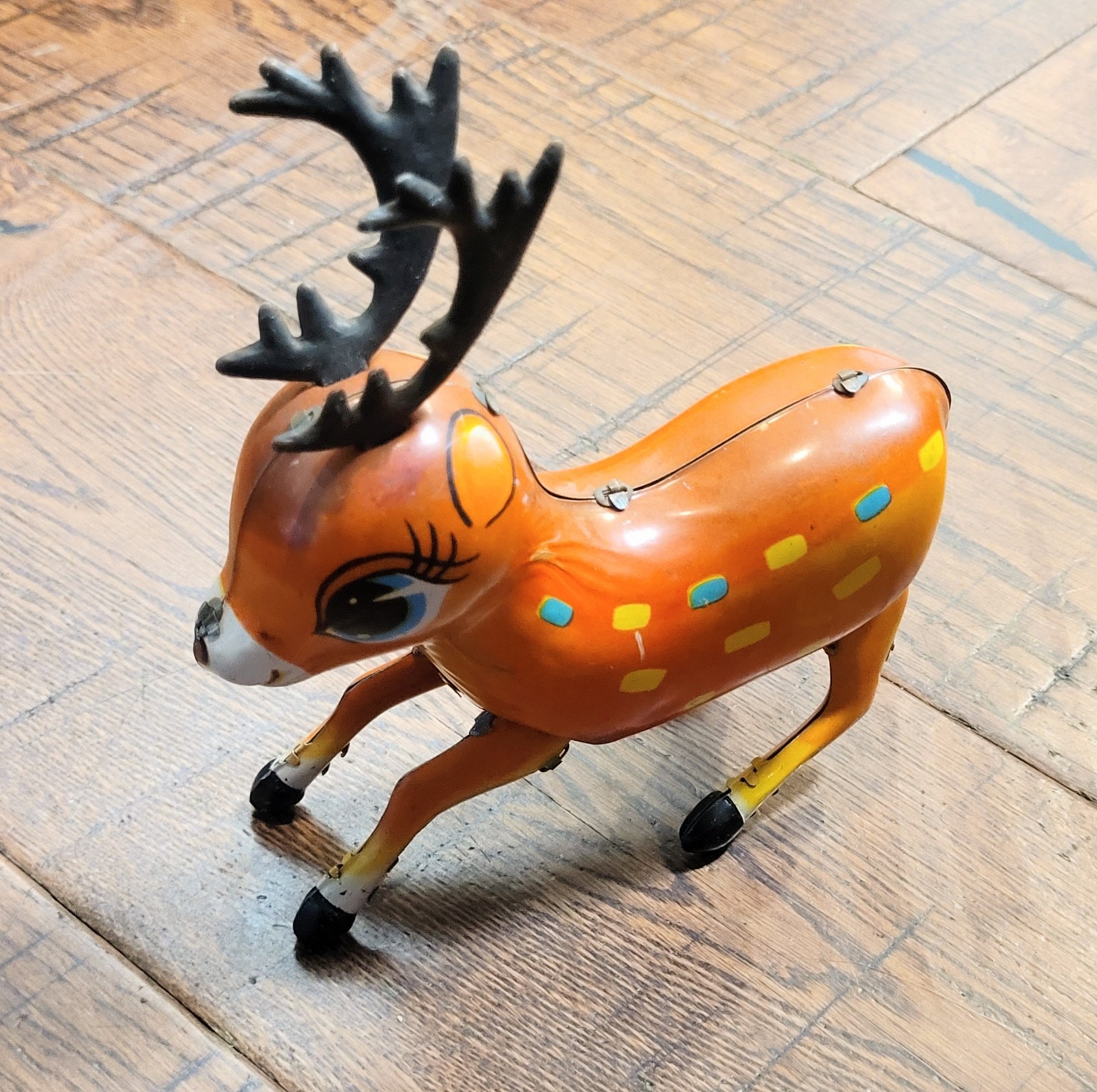 как выглядит Vintage Jumping Spring Tin Bambi Reindeer NO Key 663 MS 107 фото