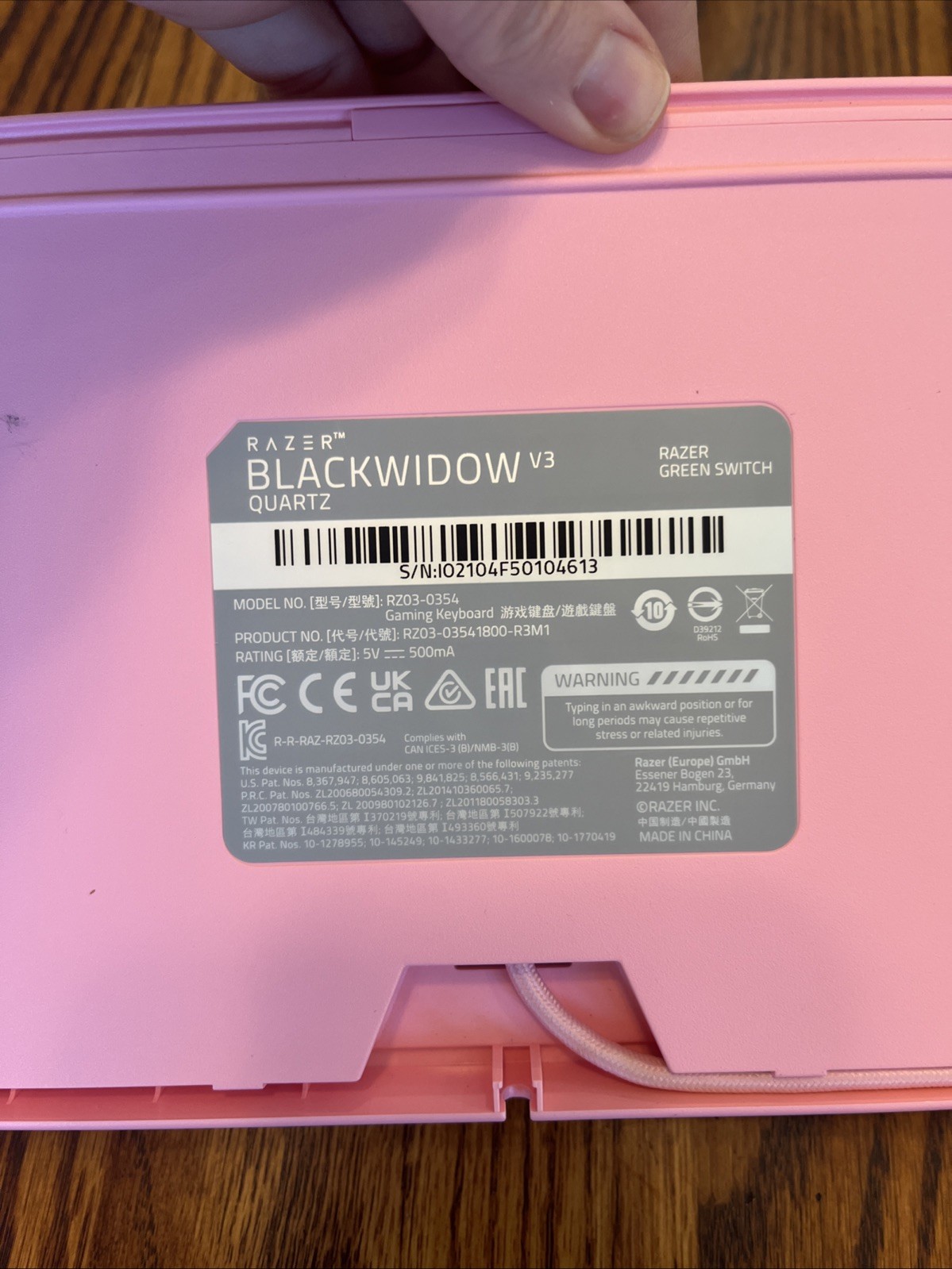 Razer Blackwidow V3 Quartz Mechanical Gaming Keyboard Grn Tactical Switch Pink