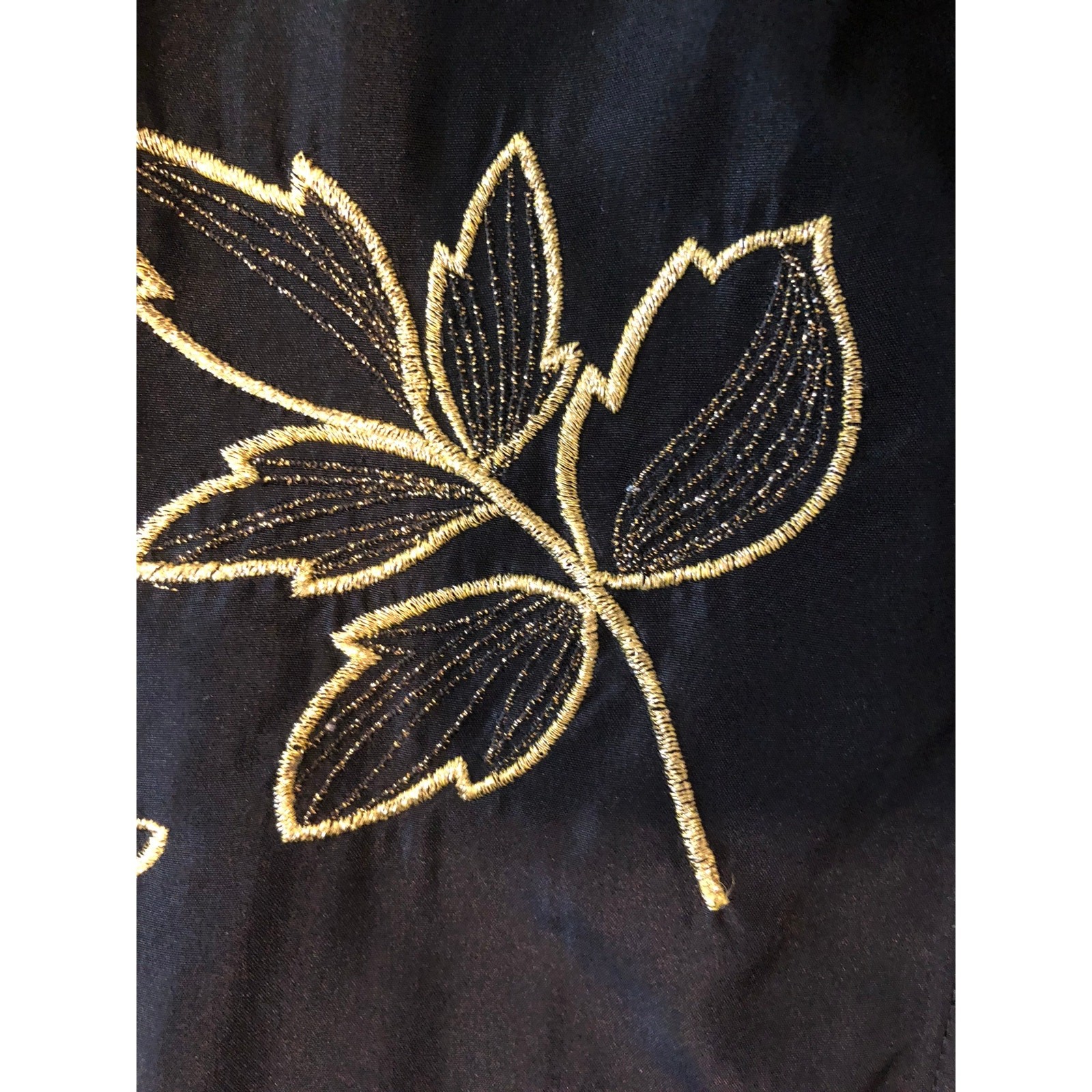 как выглядит Track Suit Vintage Style 80s Womens Size L Black Gold Embroidered Leaves Flaw фото